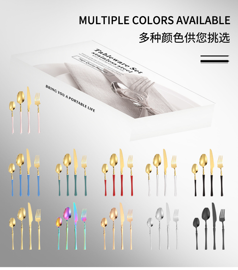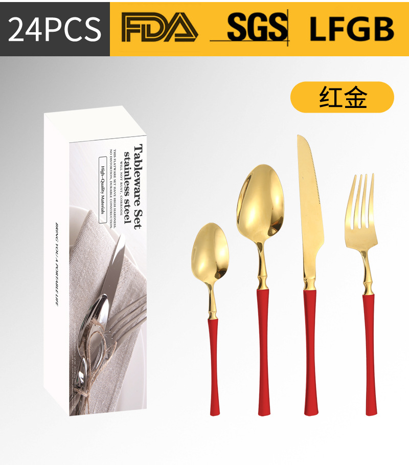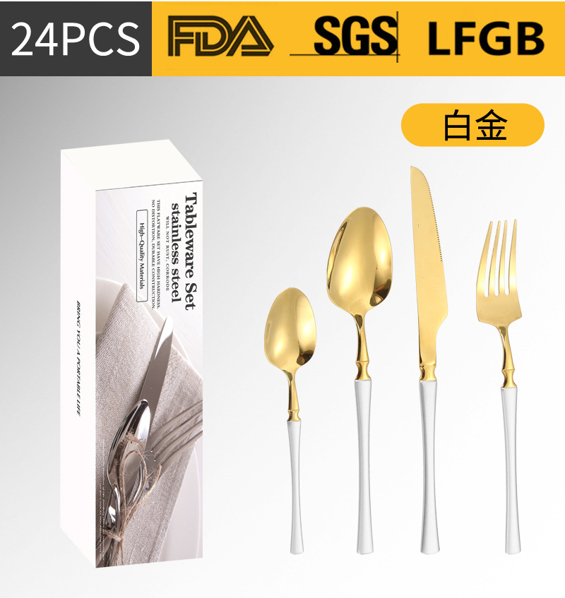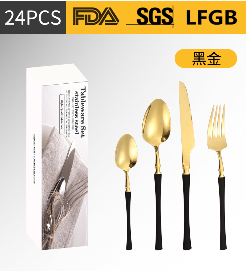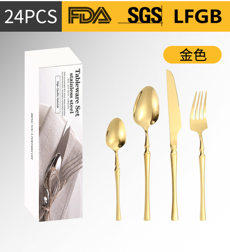 Amazon transfronteriza vajilla de acero inoxidable 16/20/24 traje cintura pequeña cuatro piezas principales caja simple cuchillo, tenedor y cuchara traje