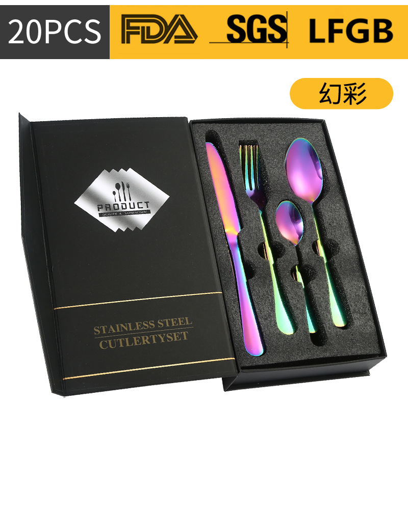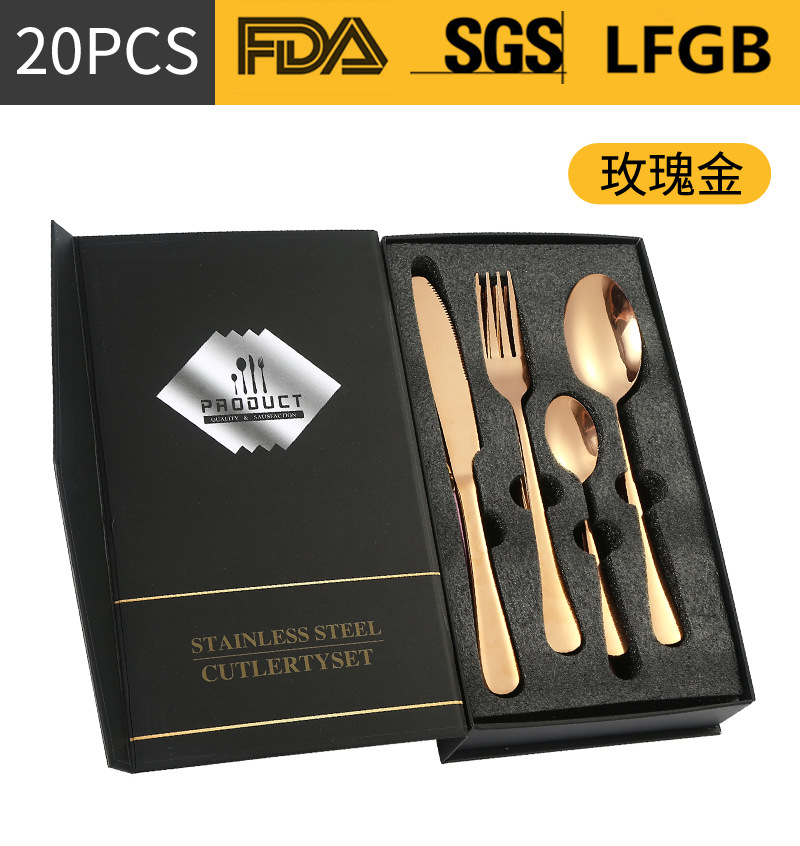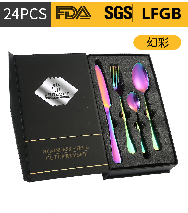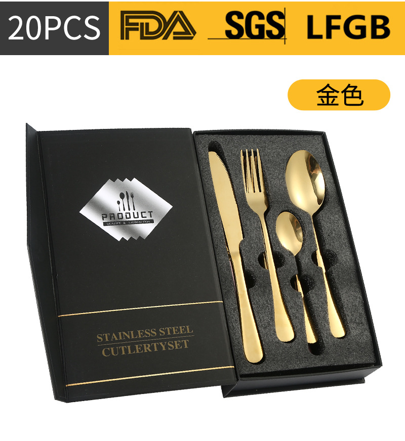 Amazon vajilla de acero inoxidable 16/20/24 paquete 1010 cuatro piezas principales algodón perla caja regalo cuchillo, tenedor y cuchara traje