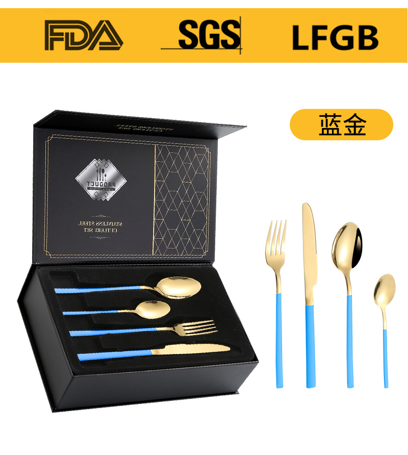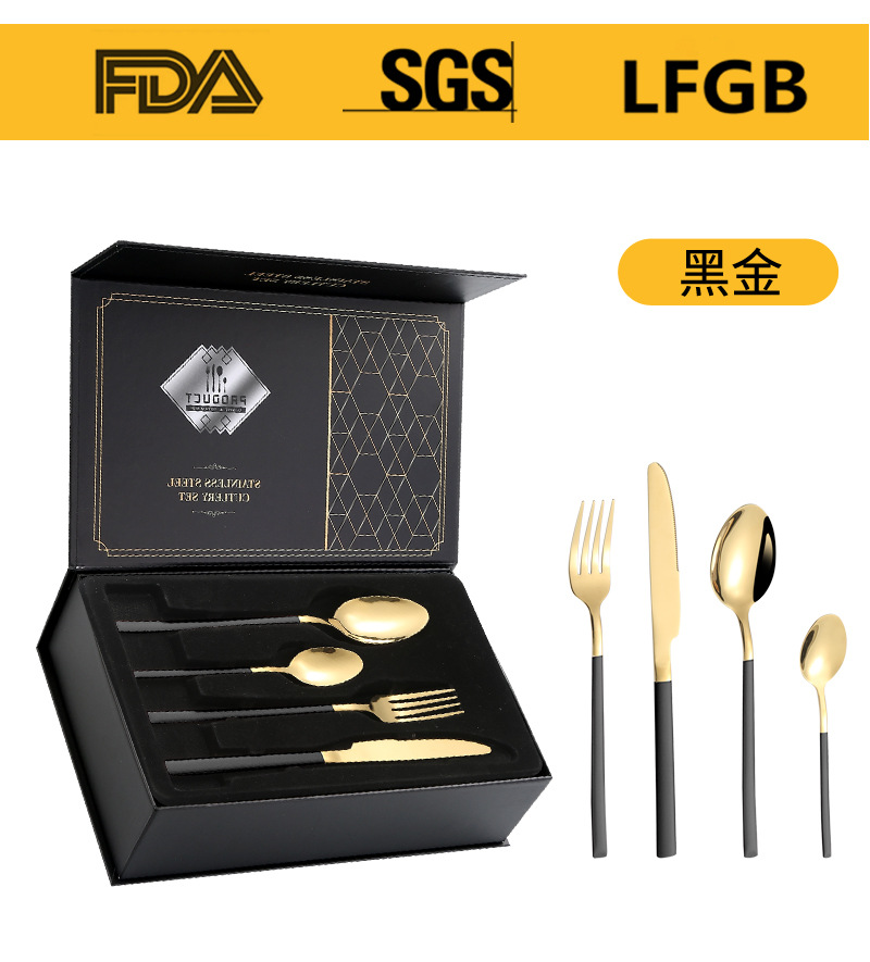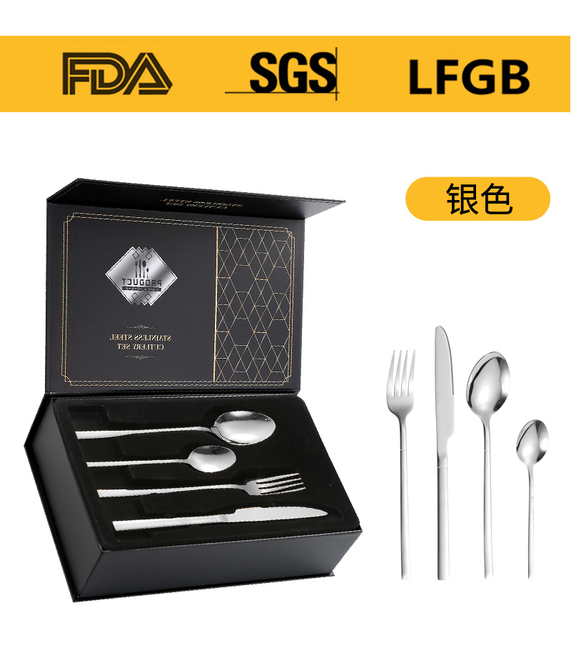 Amazon productos transfronterizos vajilla de acero inoxidable juego de 16/24 piezas Caballero 4 piezas principales caja de regalo traje de cuchillo, tenedor y cuchara de comida occidental
