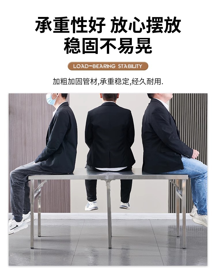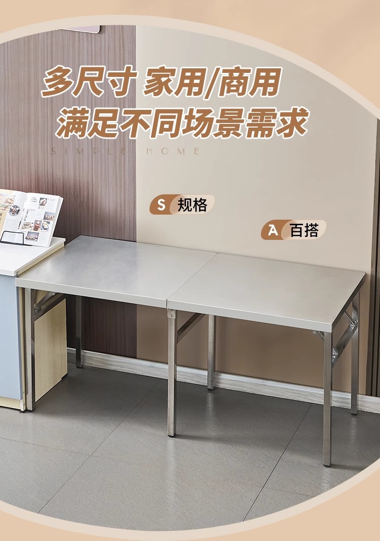 Mesa plegable de acero inoxidable engrosada Mesa de tiras largas para el hogar Mesa de comedor portátil para puestos de barbacoa al aire libre rectangular comercial