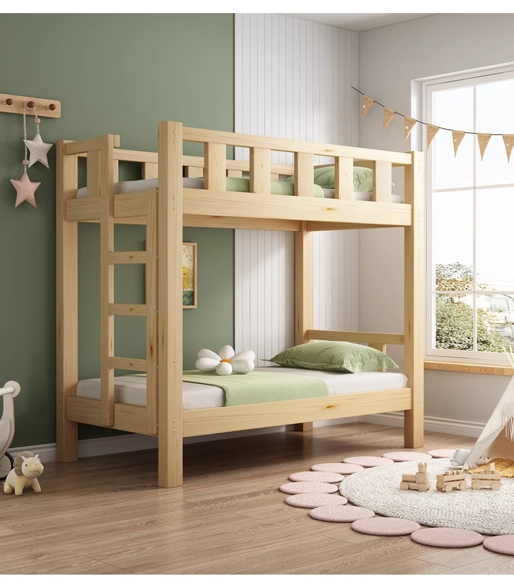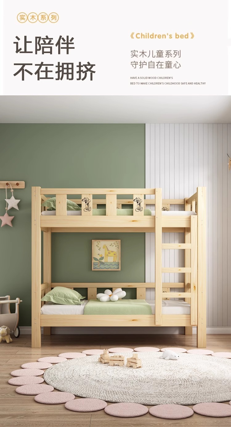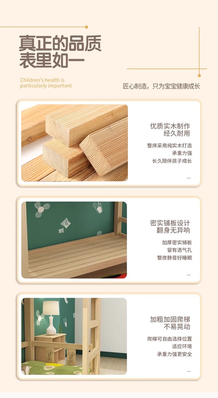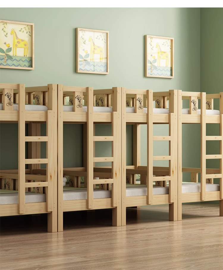 Cama de jardín de infantes, cama de almuerzo, cama de siesta para estudiantes de la escuela primaria, cama de madera maciza, cama de altura baja, cama de doble capa