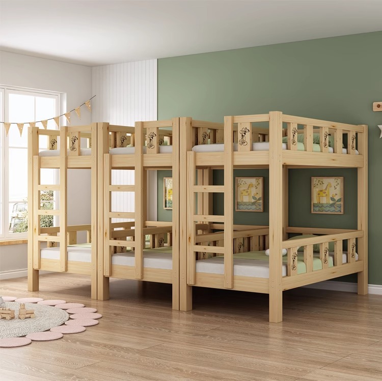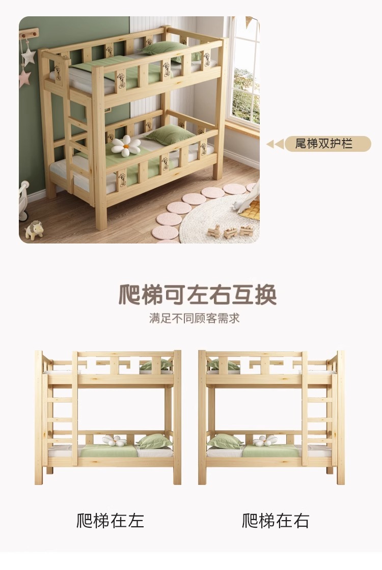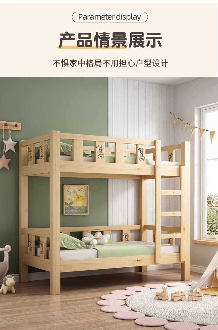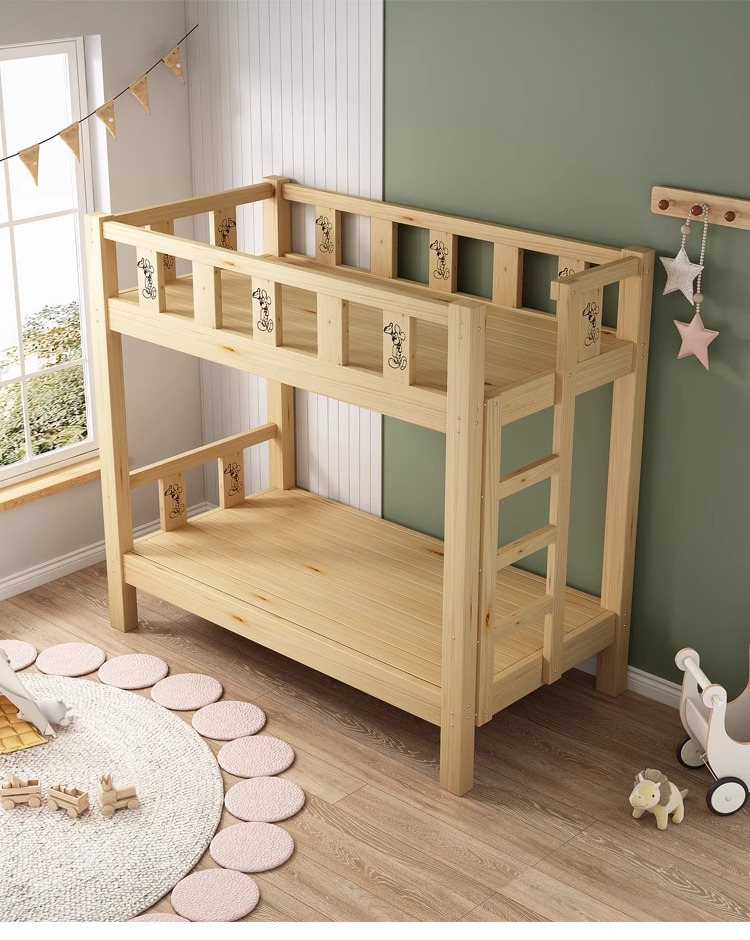 Cama de jardín de infantes, cama de almuerzo, cama de siesta para estudiantes de la escuela primaria, cama de madera maciza, cama de altura baja, cama de doble capa