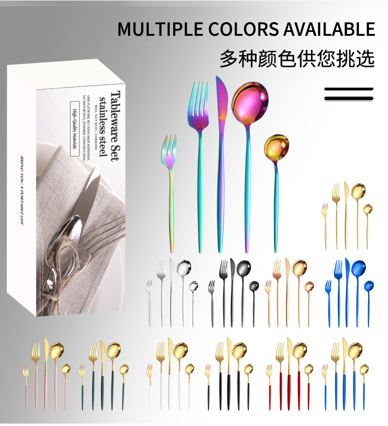 Amazon vajilla de acero inoxidable 20/30/40 piezas traje Portugal 4 piezas principales caja simple comida occidental cuchillo, tenedor y cuchara traje