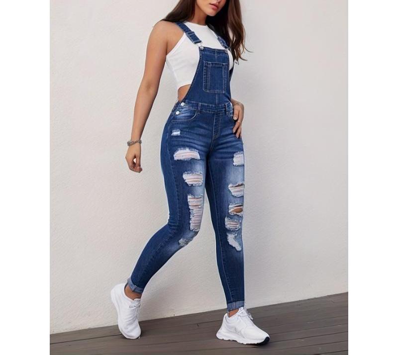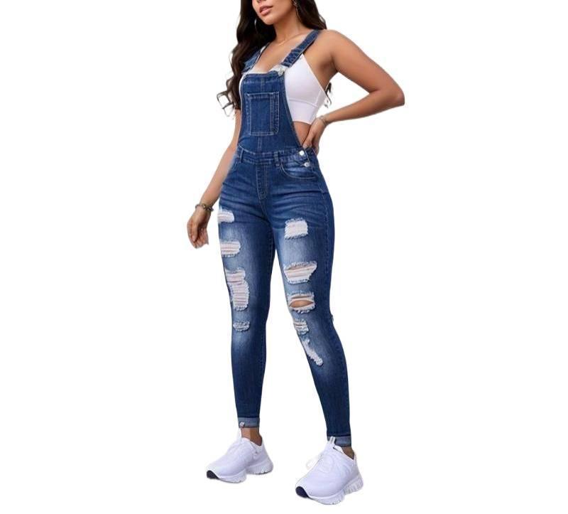 Vintage Aesthetic: Channeling 90s and early 2000s vibes, these overalls feature a relaxed, slightly baggy fit (with a tapered or straight leg) that nods to classic workwear sty. The wash leans toward faded indigo, light blue, or even a muted black, enhancing the "lived-in" retro feel.Ripped & Distressed Details: Strategic distressing takes center stage—frayed hems, torn knees, or tattered pockets—adding a laid-back, rebellious edge. The distressing is artfully placed to look natural, like the overalls have been loved for years.