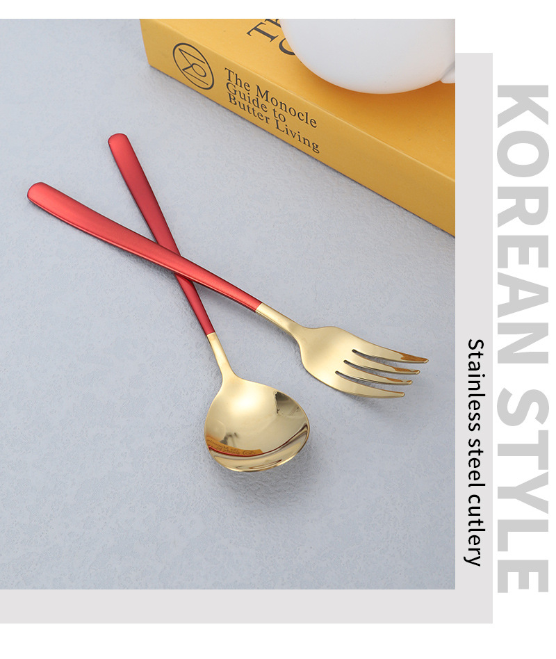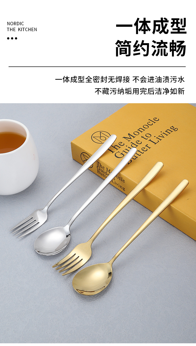 304 cuchara de acero inoxidable tenedor hogar mango largo postre agitación cuchara comer cuchara fábrica directa vajilla cuchara coreana tenedor