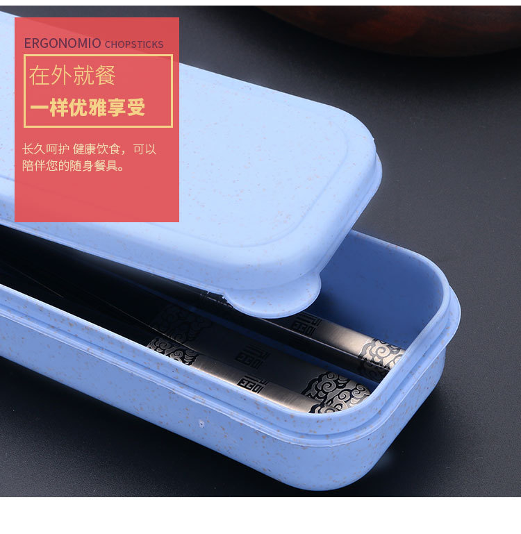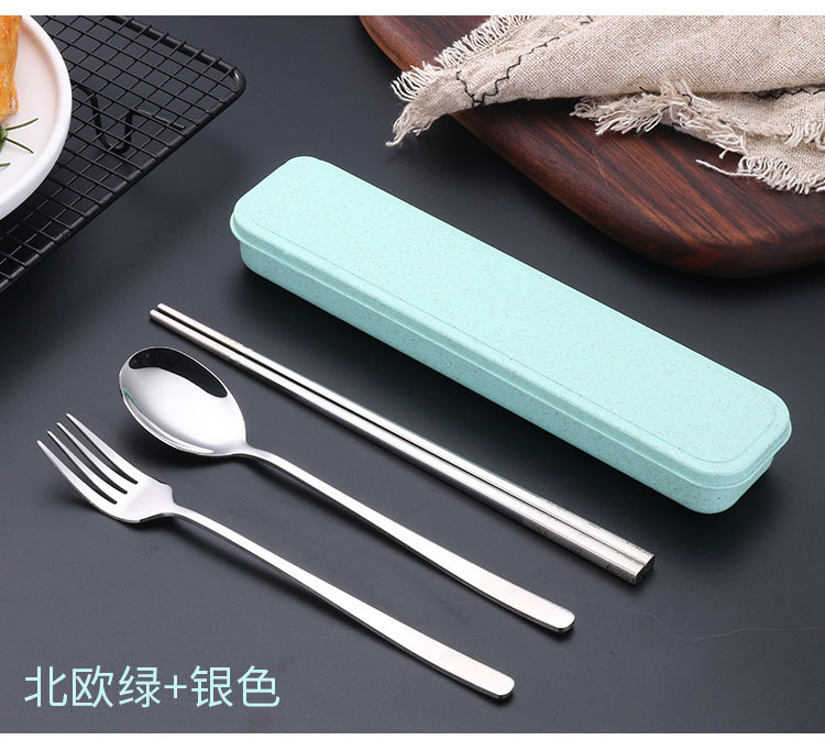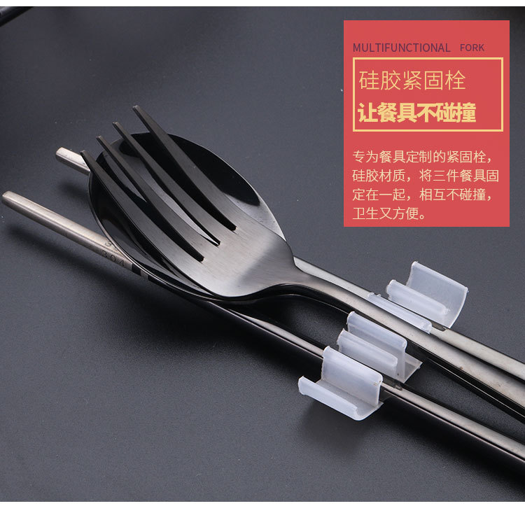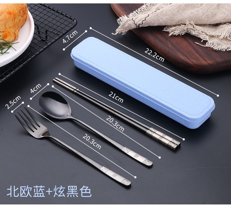 304 de estilo coreano de acero inoxidable palillos cuchara Tenedor de titanio plateado fu carácter estudiante de viaje vajilla portátil de tres piezas conjunto