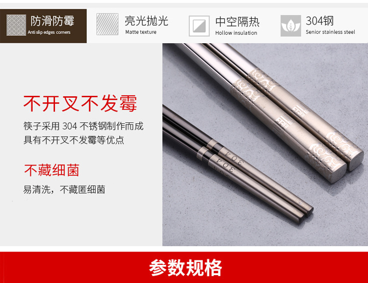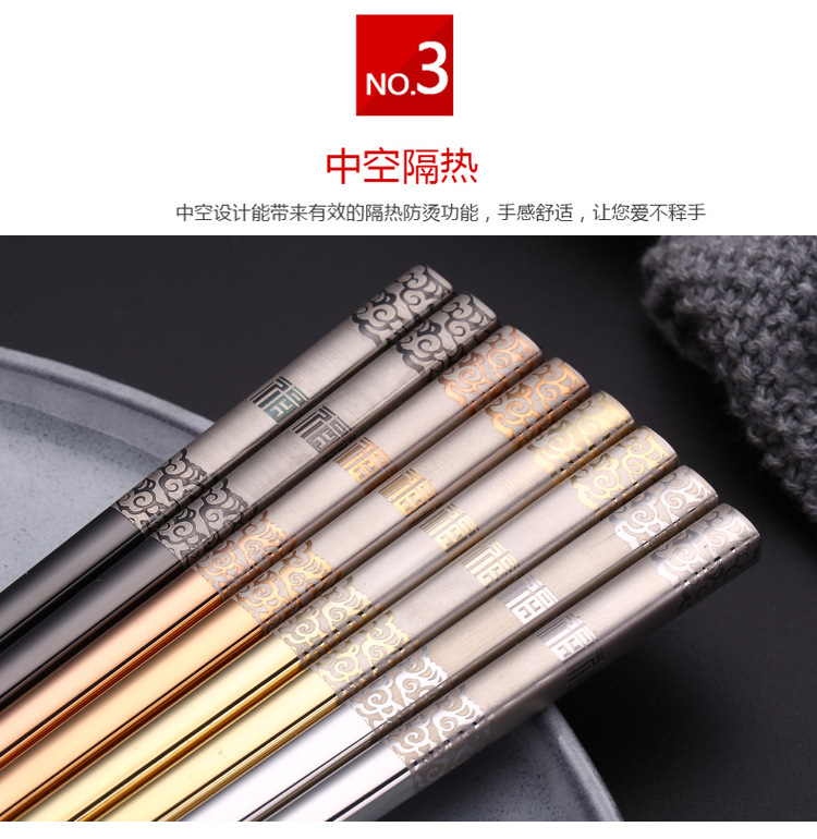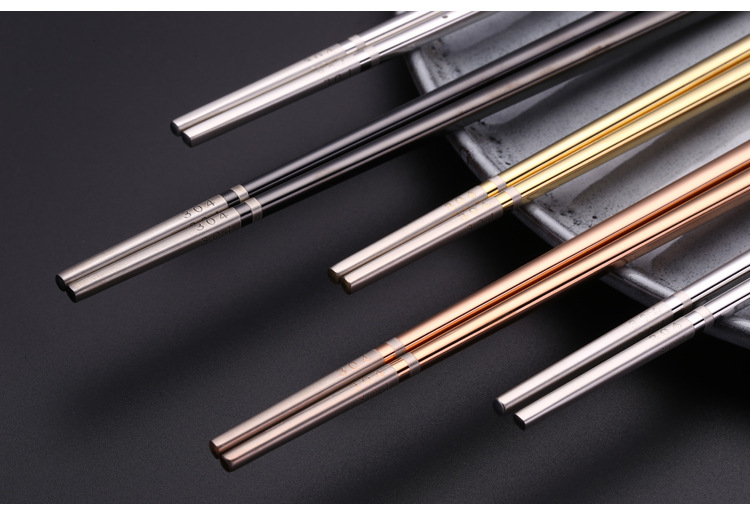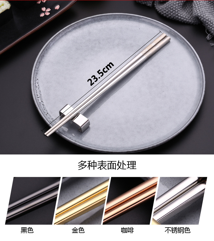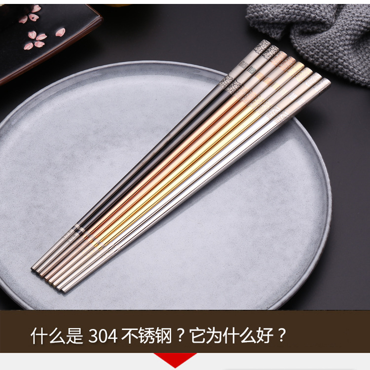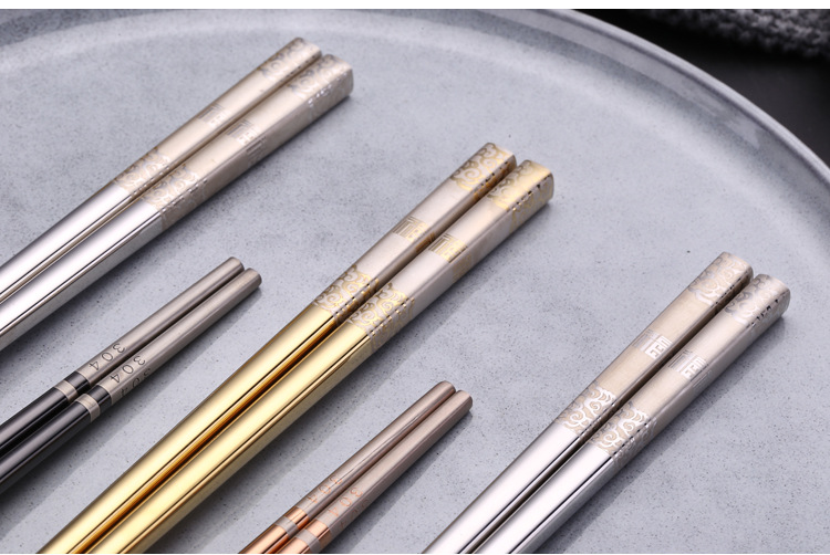 304 palillos de acero inoxidable cuadrado completo anti-balanceo Fu palillos antideslizante restaurante Hotel hogar vajilla palillos pueden ser logotipo personalizado