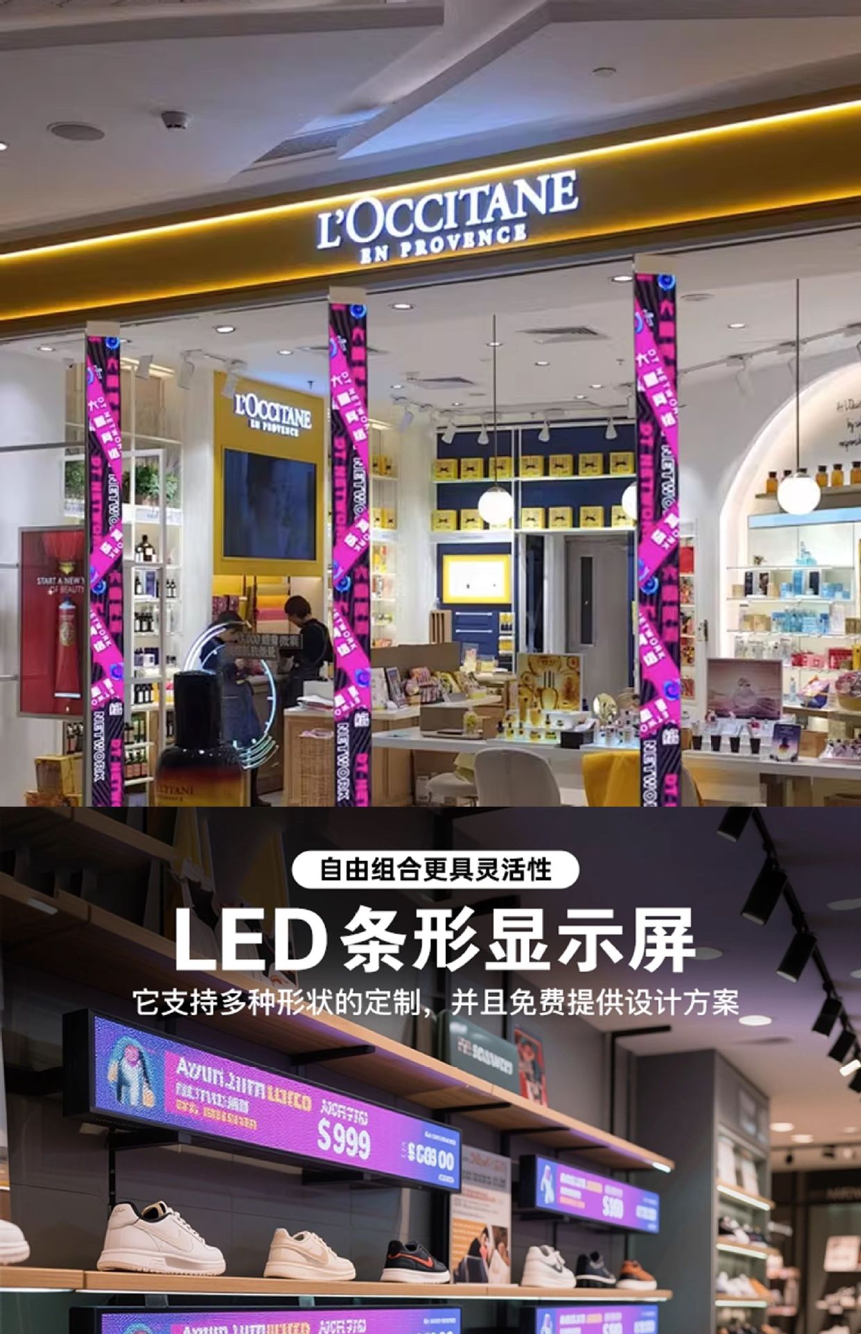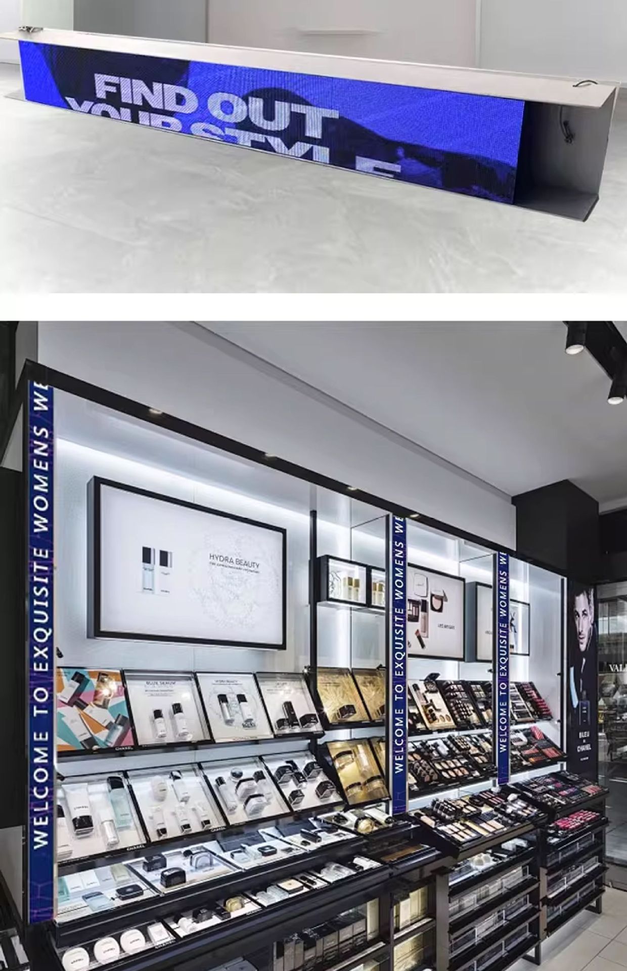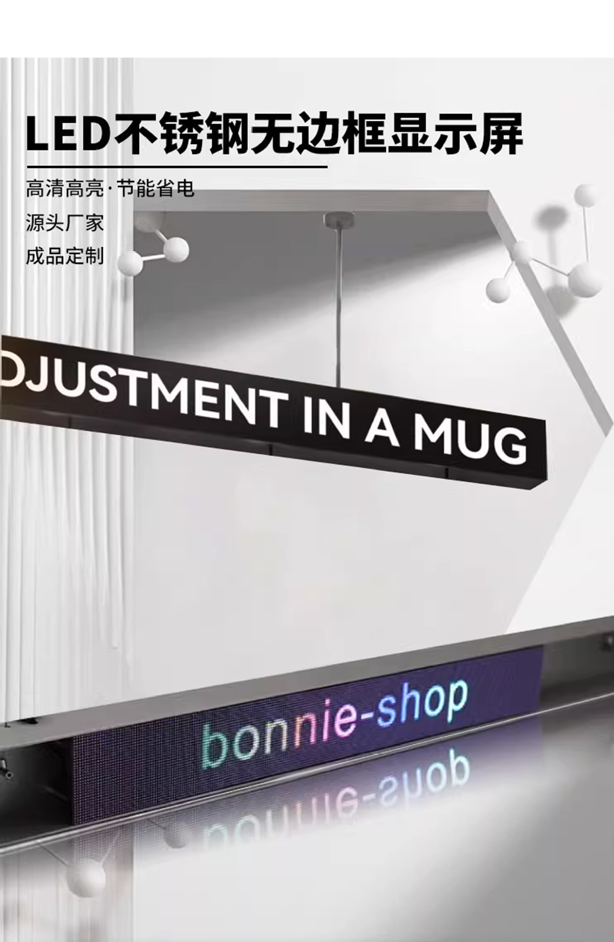 pantalla de publicidad electrónica LED decoración de pantalla de barra de color creativa rodante palabra caminante COB subtítulos artísticos de acero inoxidable