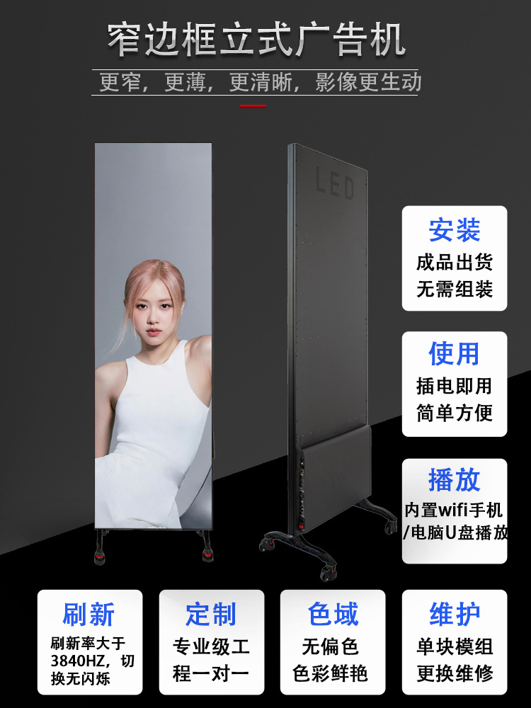 Pantalla LED vertical para publicidad, reproductor de video en red todo en uno, pantalla vertical de alta definición, LED inteligente de pie