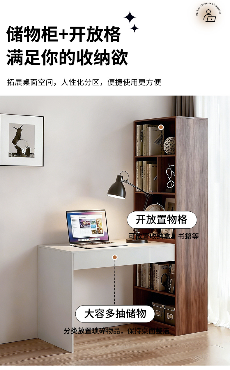 Escritorio de estudiantes dormitorio doméstico contra la pared tabla estrecha con estante de esquina escritorio de computadora simple gabinete de almacenamiento escritorio integrado