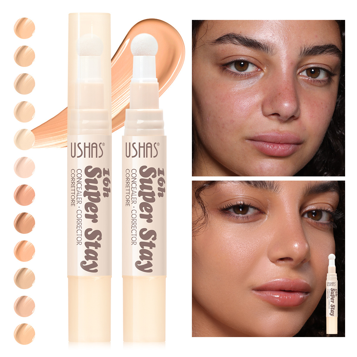 (Caja de presentación) USHAS punto transfronterizo venta caliente barra de base corrector ilumina el tono de la piel y las ojeras 24 piezas una caja