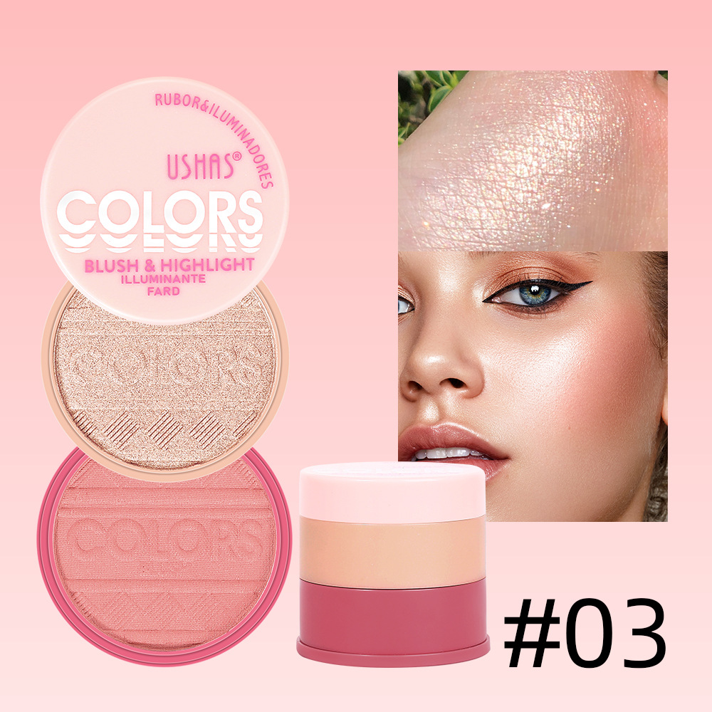 (Caja de presentación) USHAS venta caliente transfronteriza rubor impermeable de larga duración UF083 rubor en polvo de alto brillo UF083