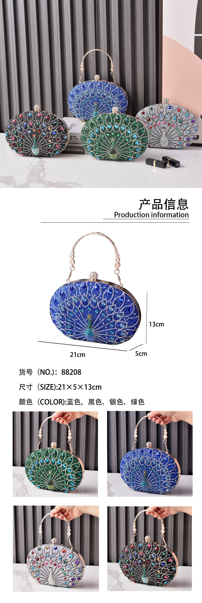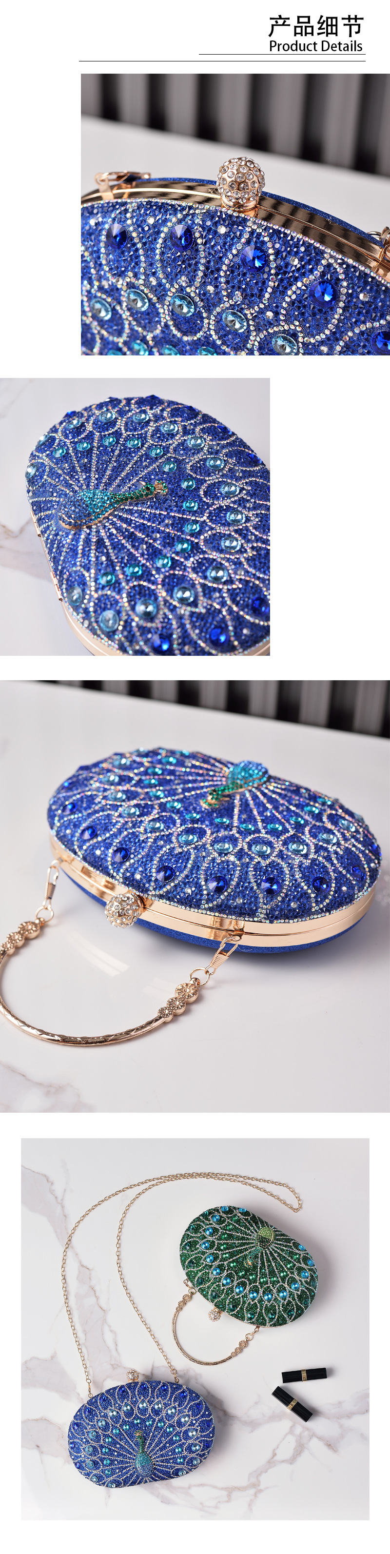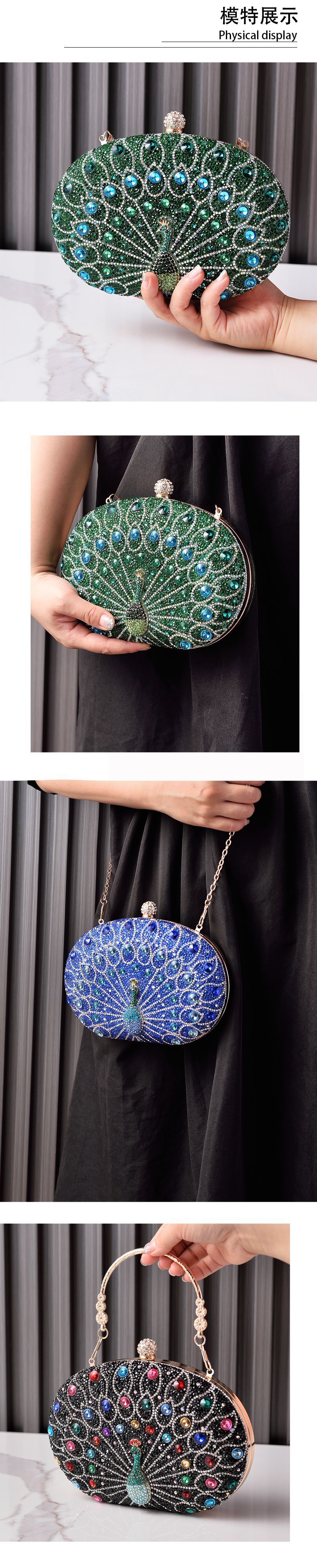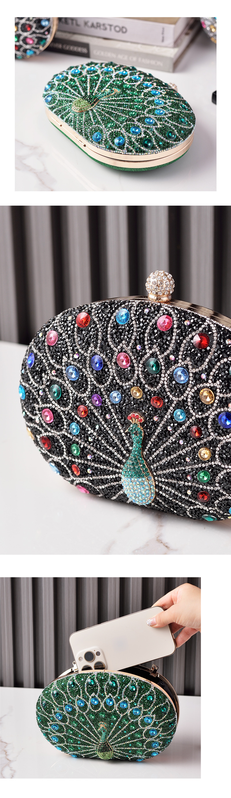 Nuevo bolso de cena de pavo real con incrustaciones de diamantes Bolso de fiesta de estilo retro europeo y americano transfronterizo Bolso de vestido negro de alta gama Ventas directas de fábrica