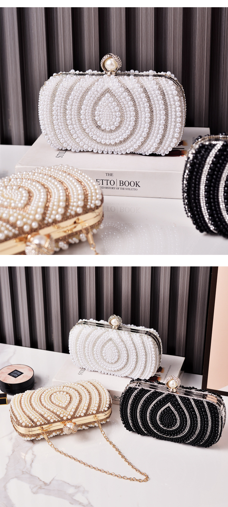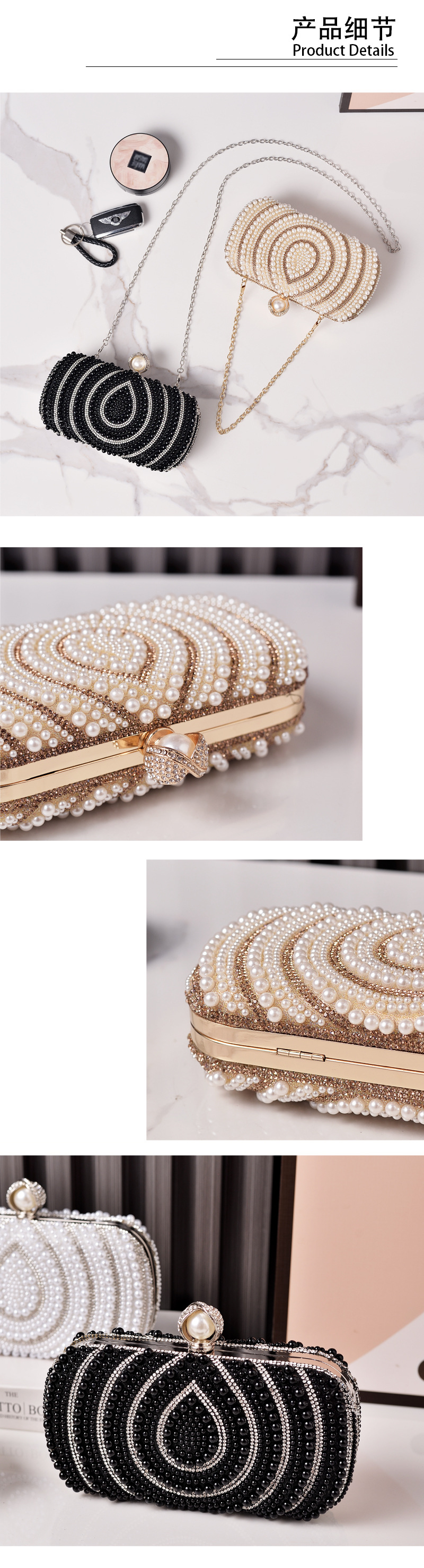 Venta caliente transfronteriza nuevos bolsos de perlas paquete de boda de moda europea y americana bolso de embrague cheongsam blanco retro ventas directas de fábrica