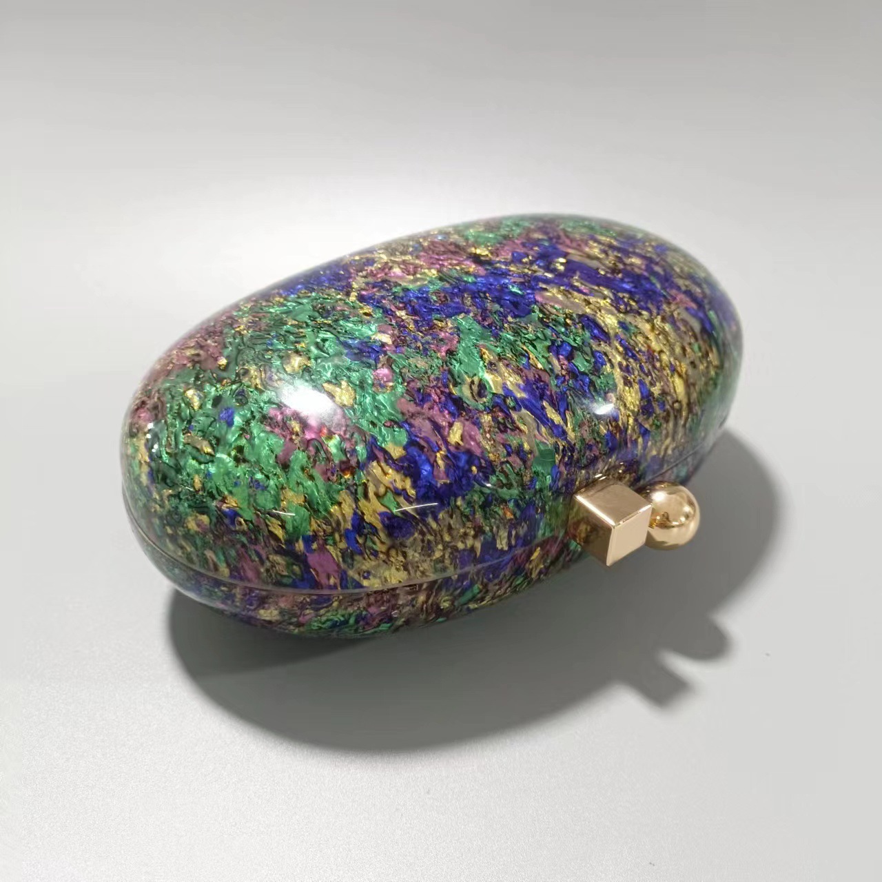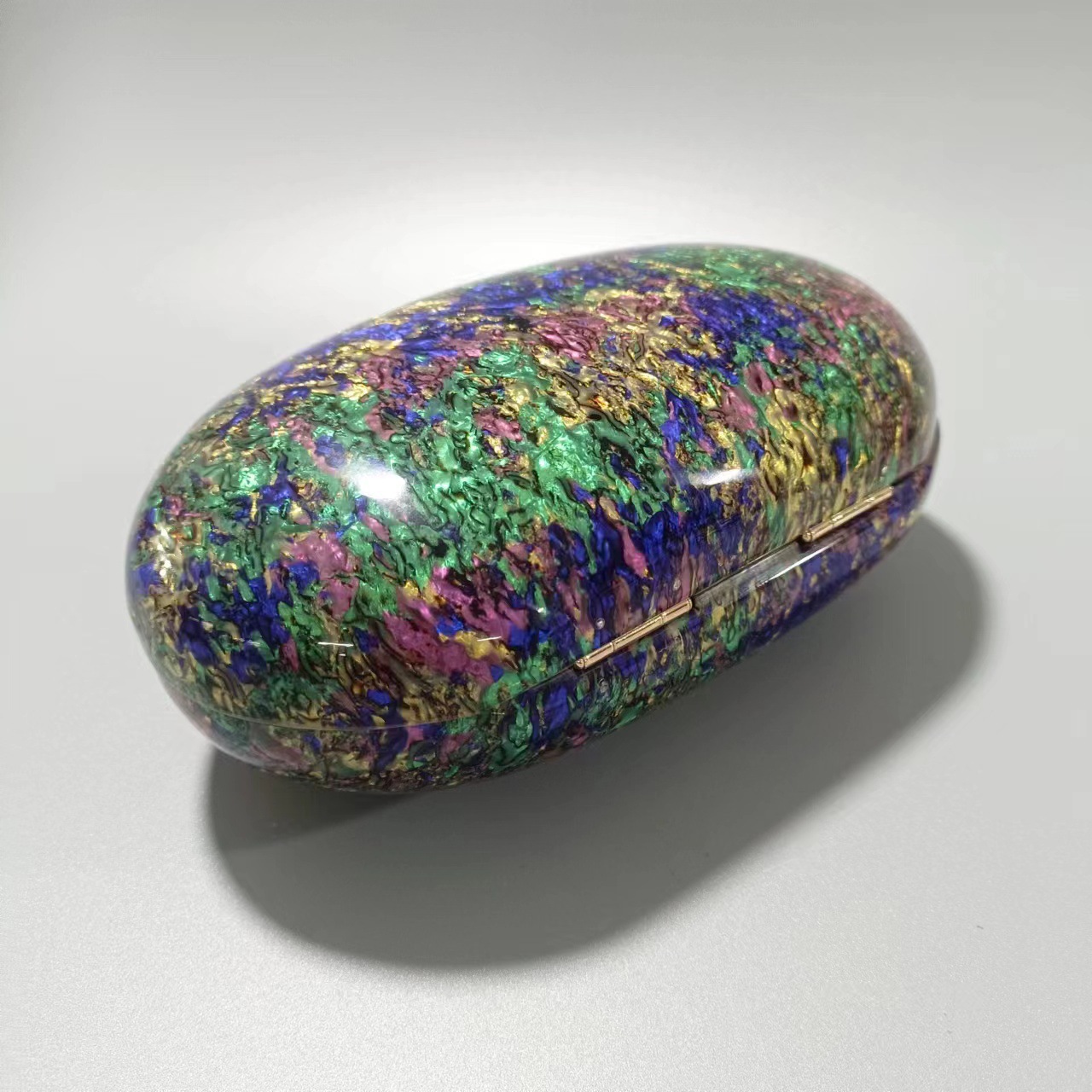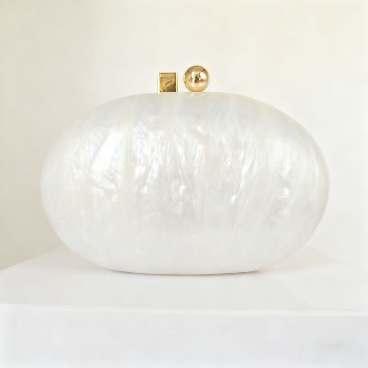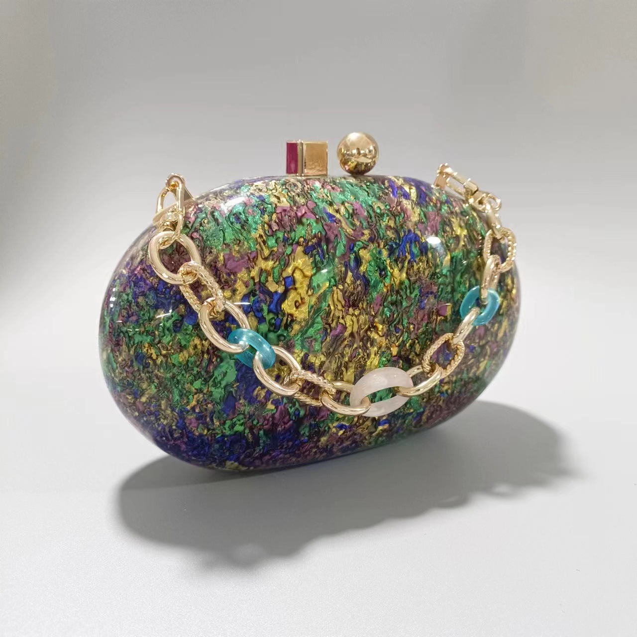 Bolsa de cena de lujo ligera transfronteriza, café de perla de almendro, bolsa de mano acrílica ovalada, bolsa de noche de hombro para damas