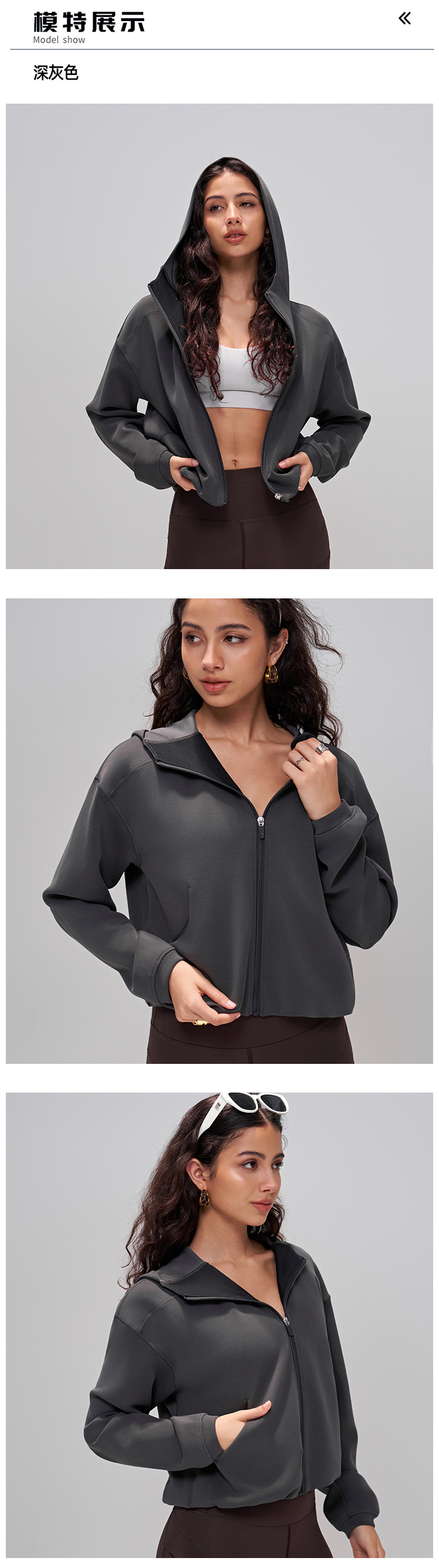 Primavera y otoño de mangas largas camisetas deportivas encapuchadas mujeres cintura doblada chaqueta de fitness para correr al aire libre chaqueta casual