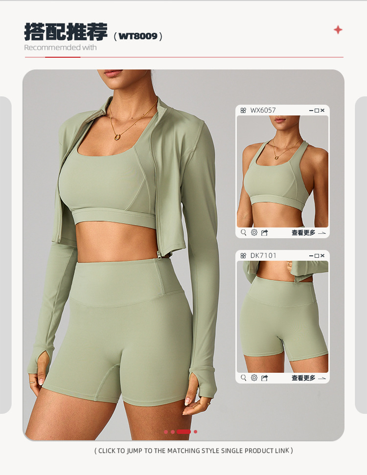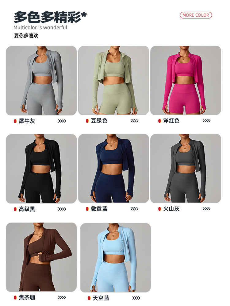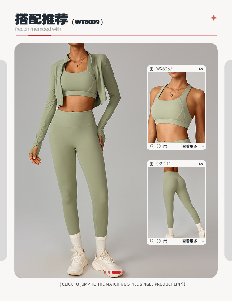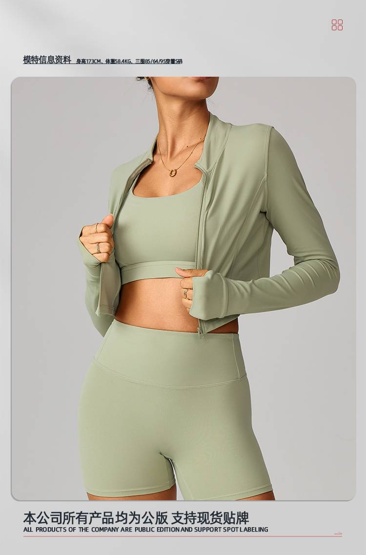 Chaqueta de yoga deportiva para correr al aire libre con cremallera, delgada, ropa de yoga de secado rápido para niñas de manga larga 8047