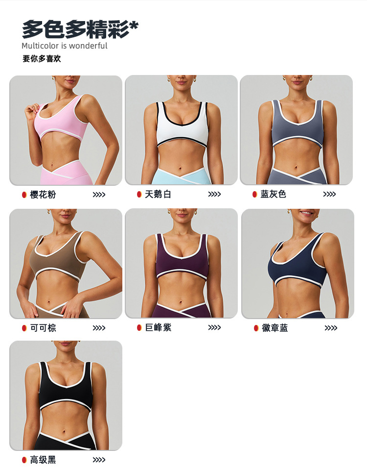 Nuevo color transfronterizo correa de hombro ancha ropa interior deportiva a prueba de choque bra de yoga de mujer ropa de fitness al aire libre 8843