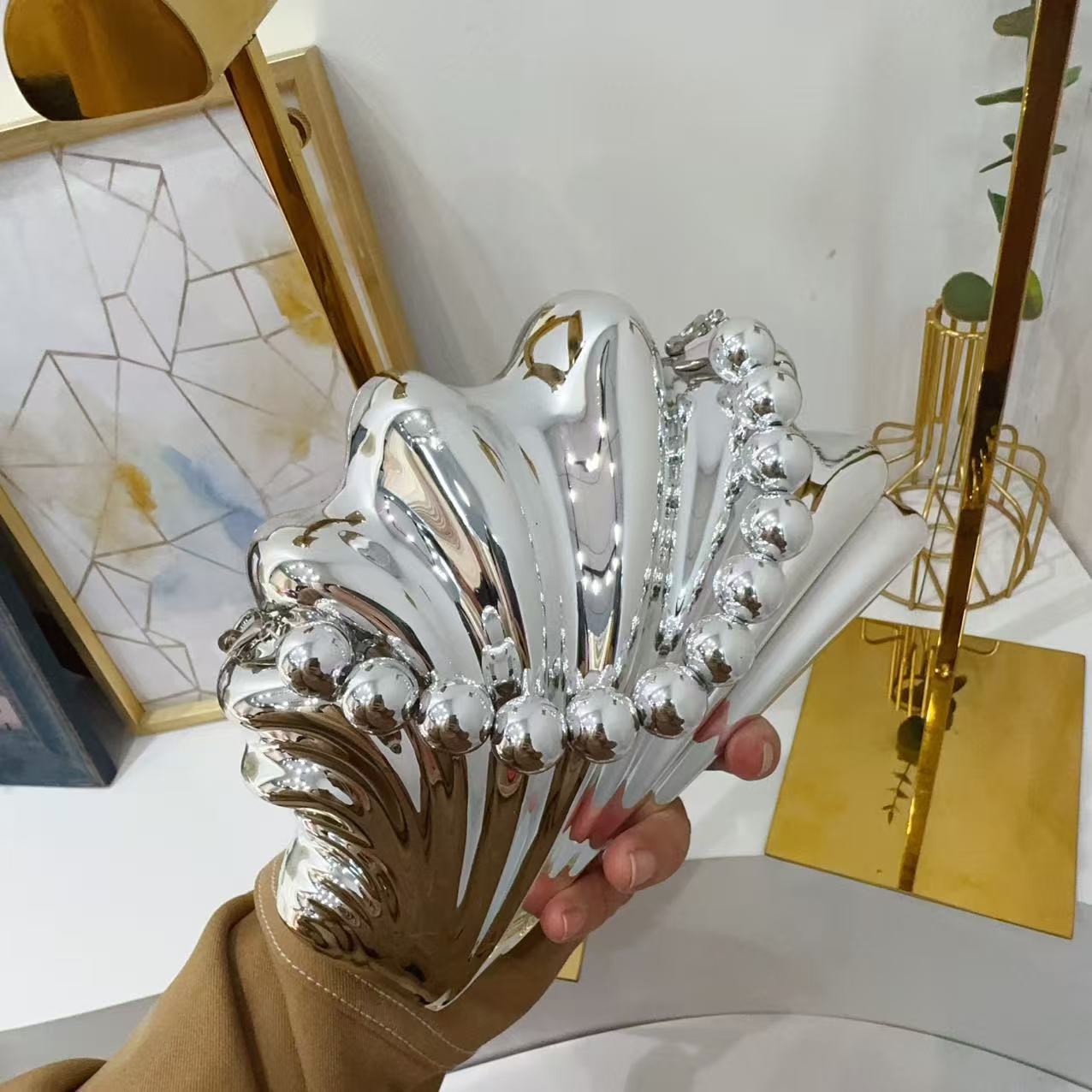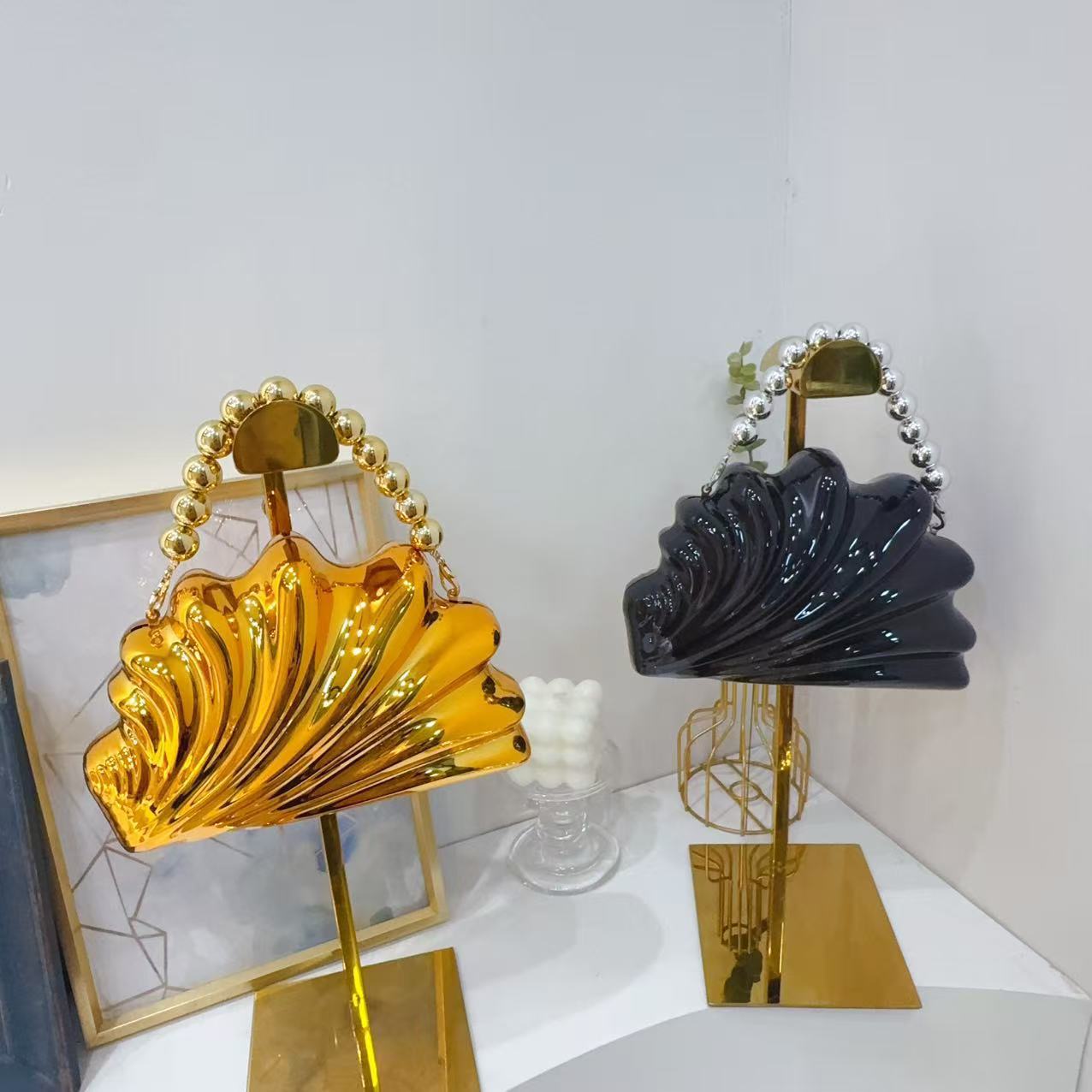 Bolsa de cena de lujo ligera transfronteriza estilo de conchas personales bolsas acrílicas perlas portátiles brillante cara de moda damas bolsas de noche