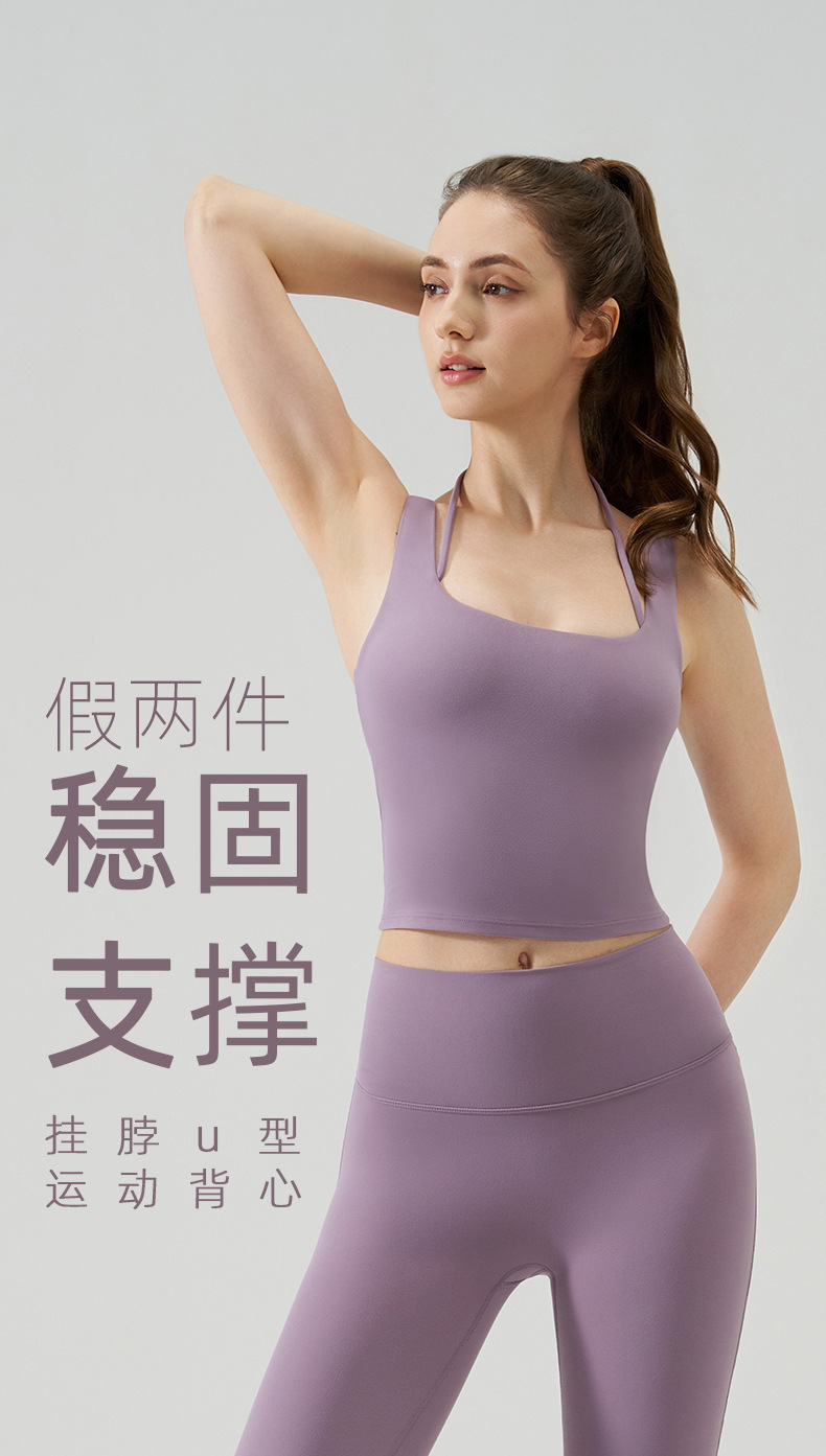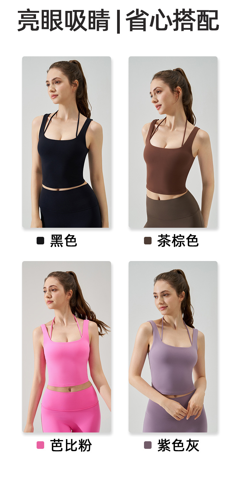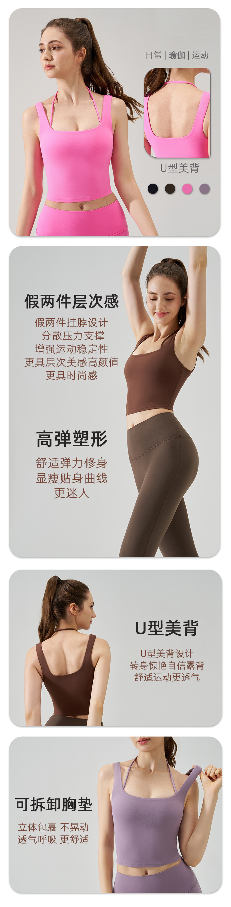 NF ropa interior deportiva desnuda para mujer falsa de dos piezas con almohadilla para el pecho Chaleco de yoga halter honda sujetador de fitness espalda hermosa a prueba de golpes