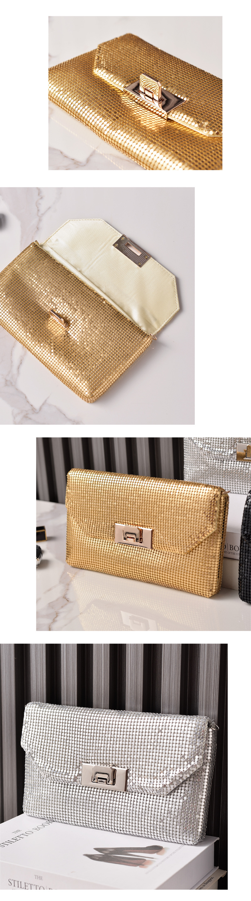 Bolsas de aluminio transfronterizas europeas y estadounidenses bolsas de cena de oro y plata bolsas de fiesta de moda bolsas de mano simple fábrica directa