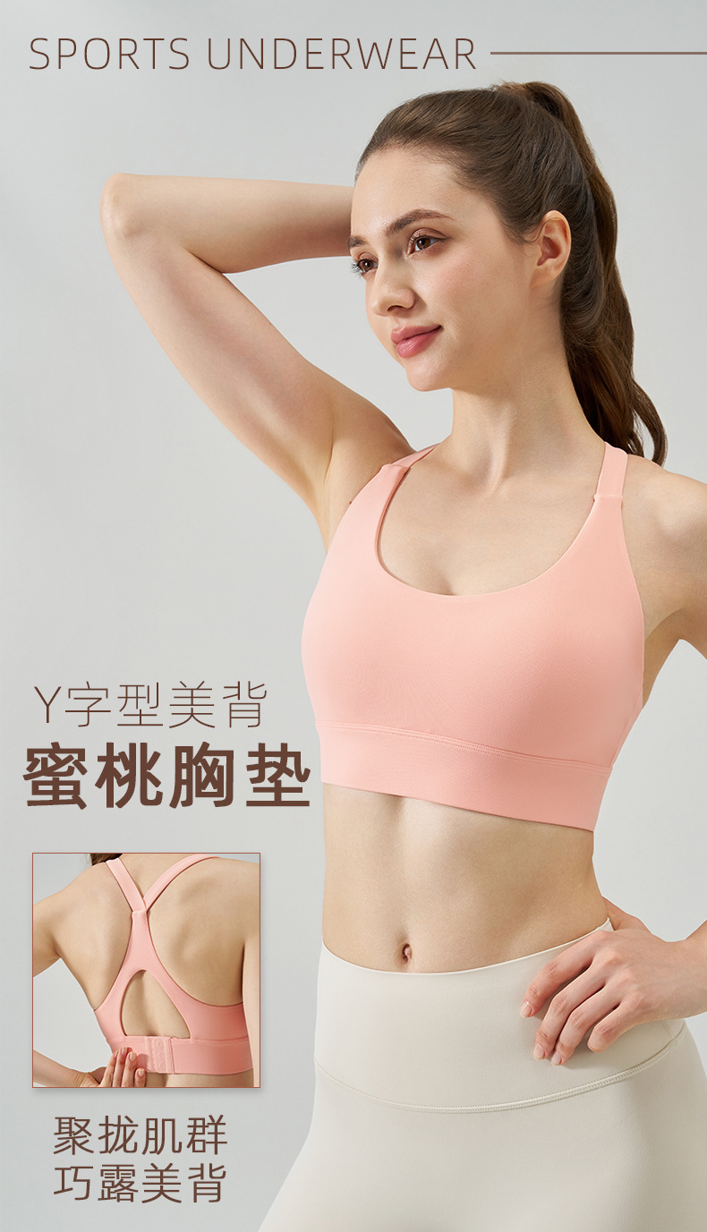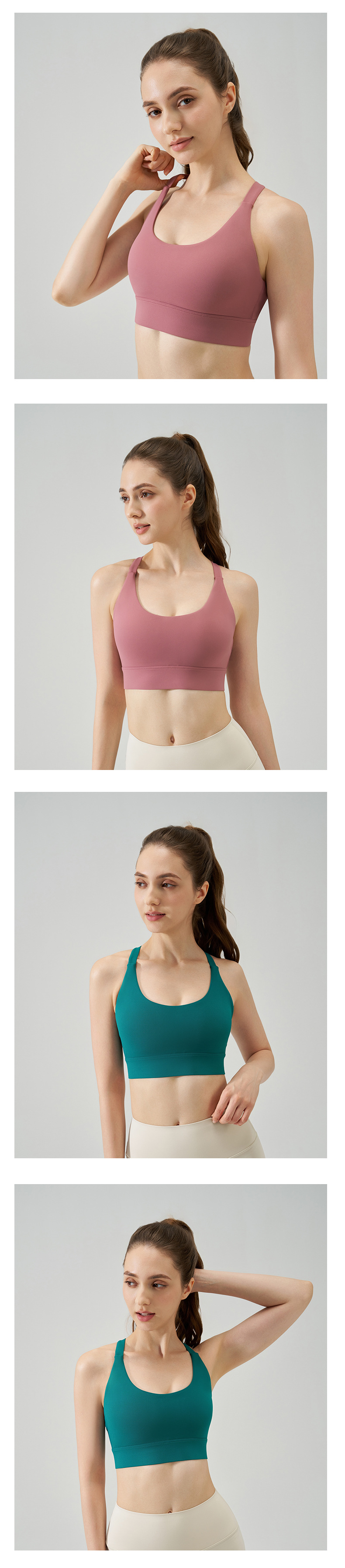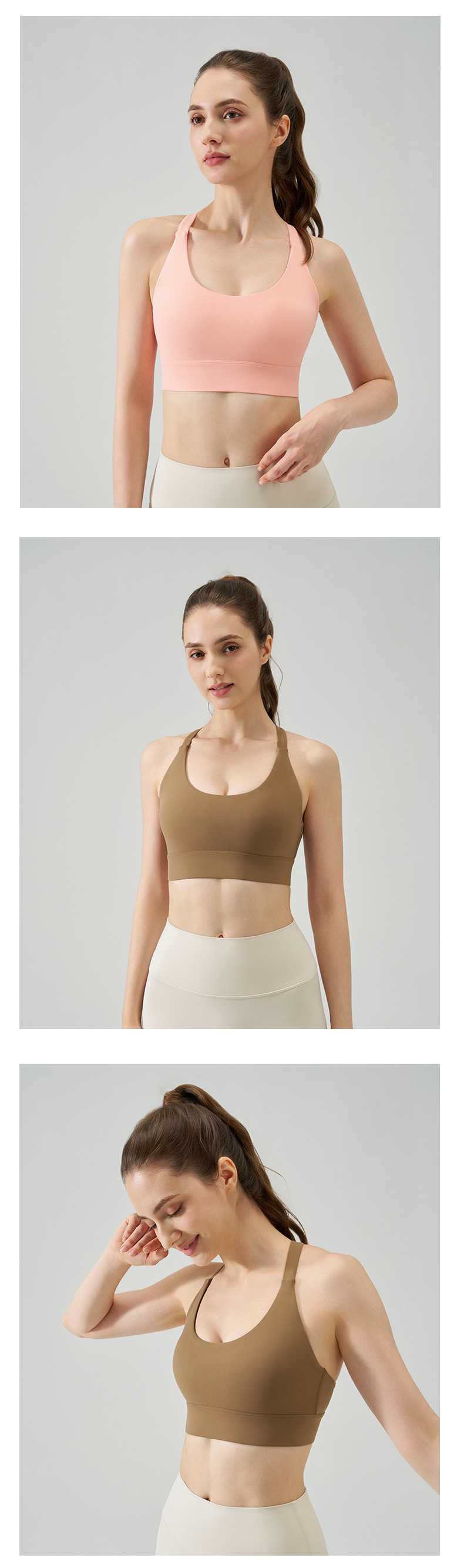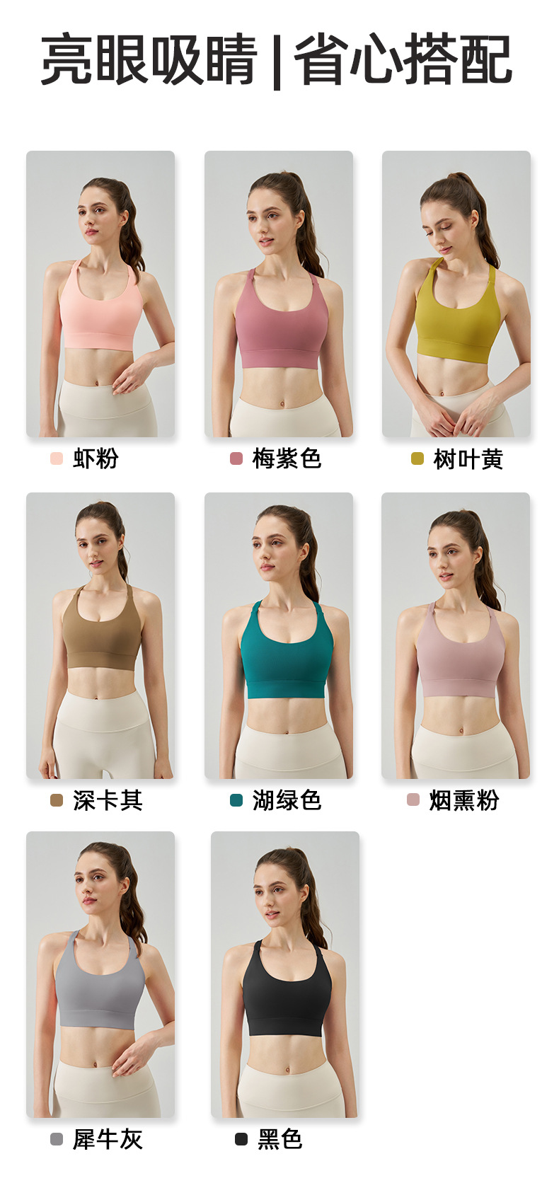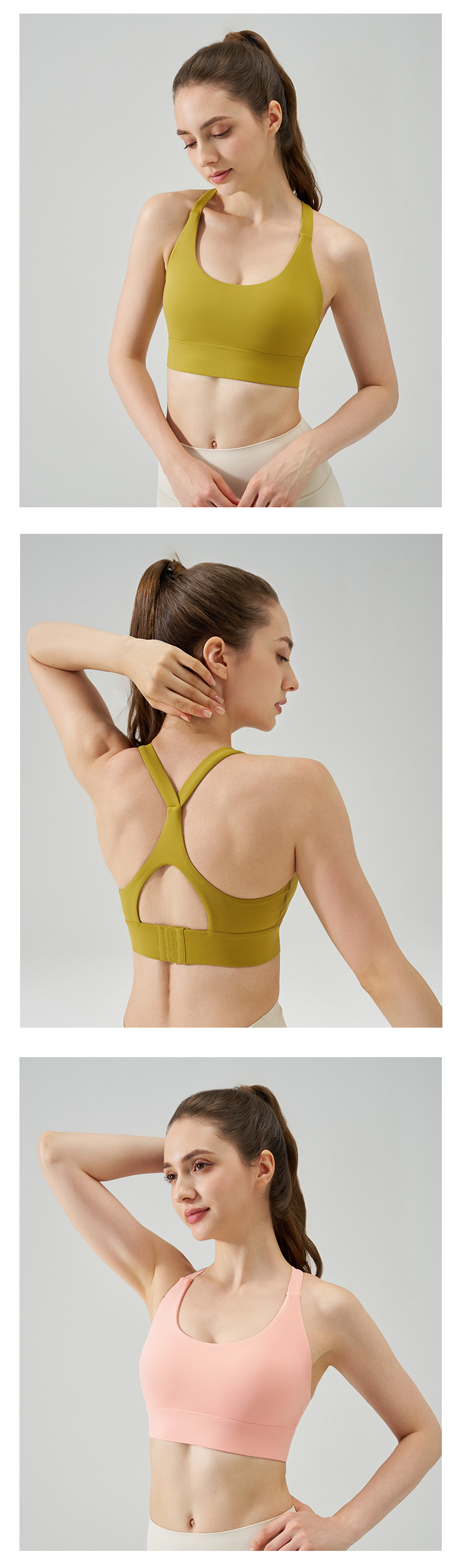Primavera y verano nuevo estilo desnudo amortiguador sujetador deportivo mujer hueca hebilla hermosa espalda fitness yoga ropa interior correr alta intensidad