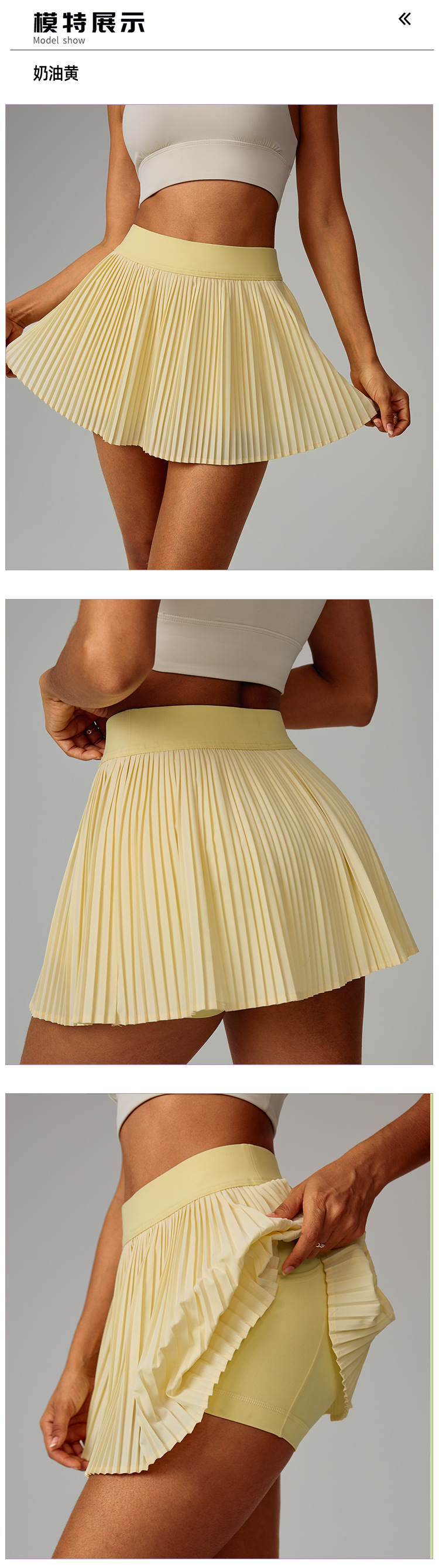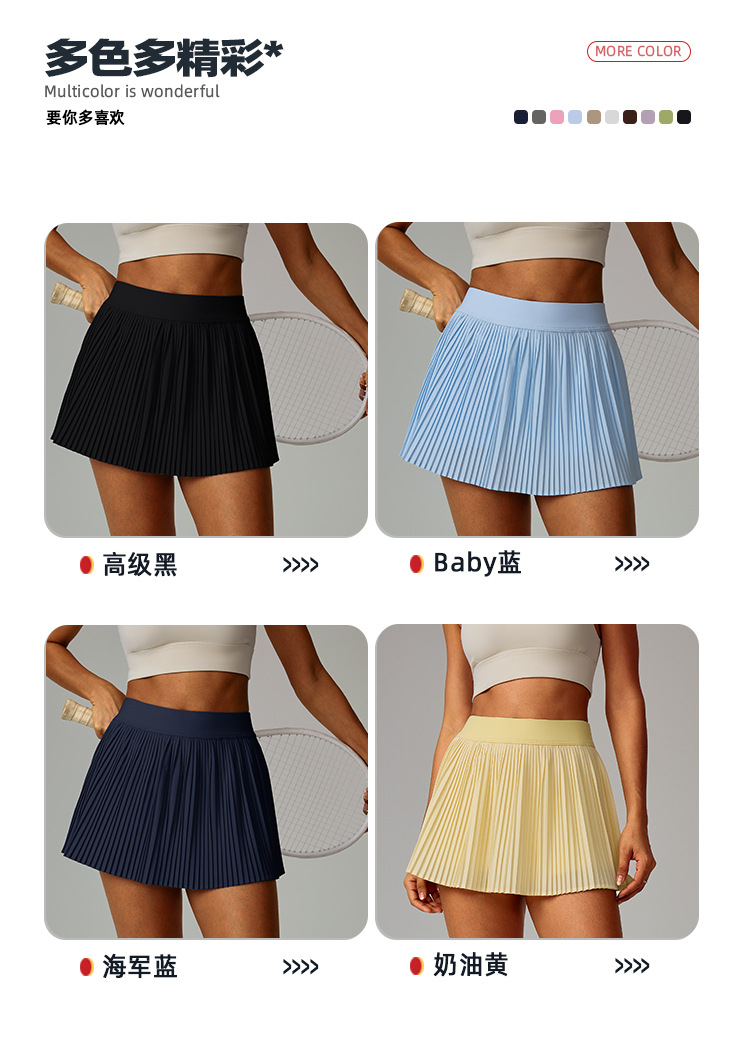 Chi Mei Yun sentido falda deportiva transpirable que cubre las caderas y se ve delgada al aire libre fitness falda de tenis plisada pantalones cortos de yoga anti-luz