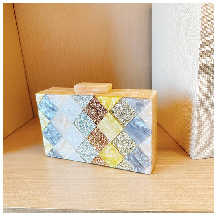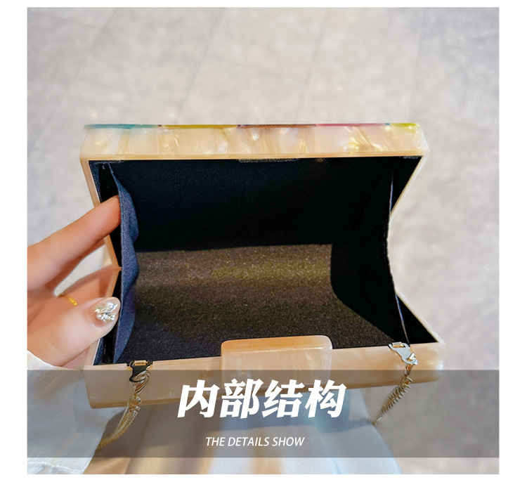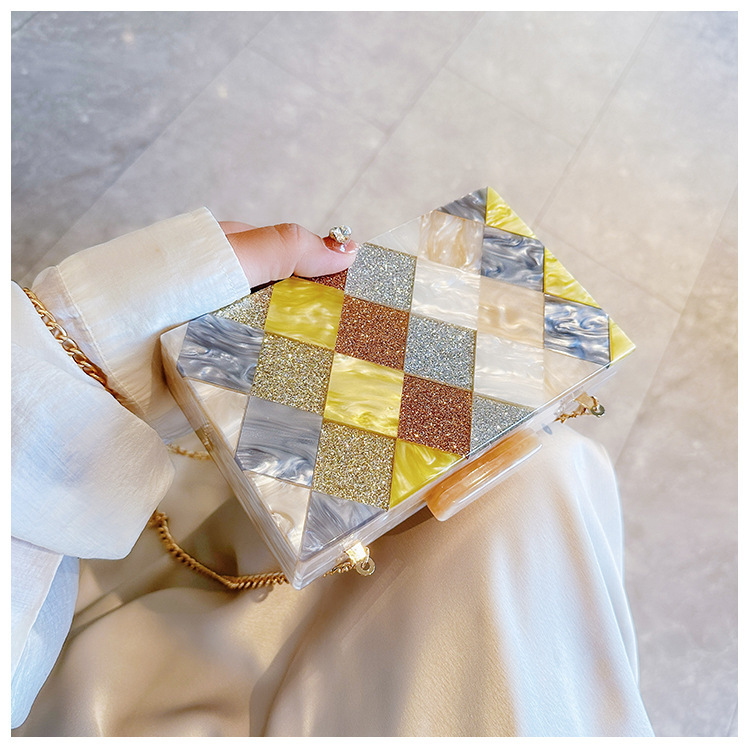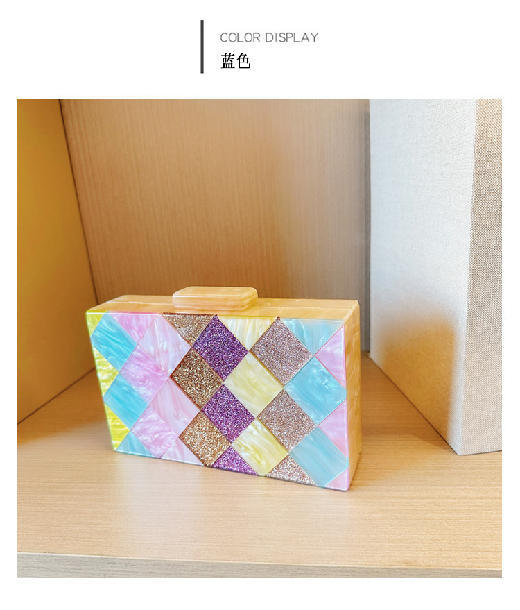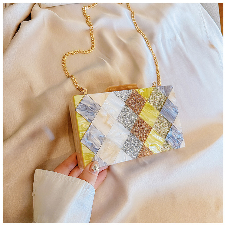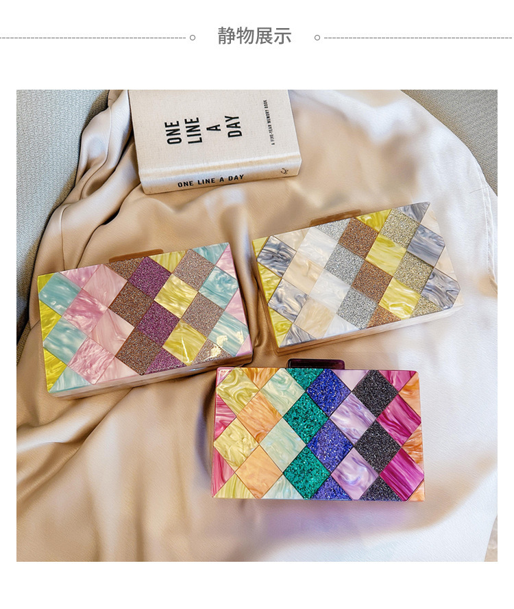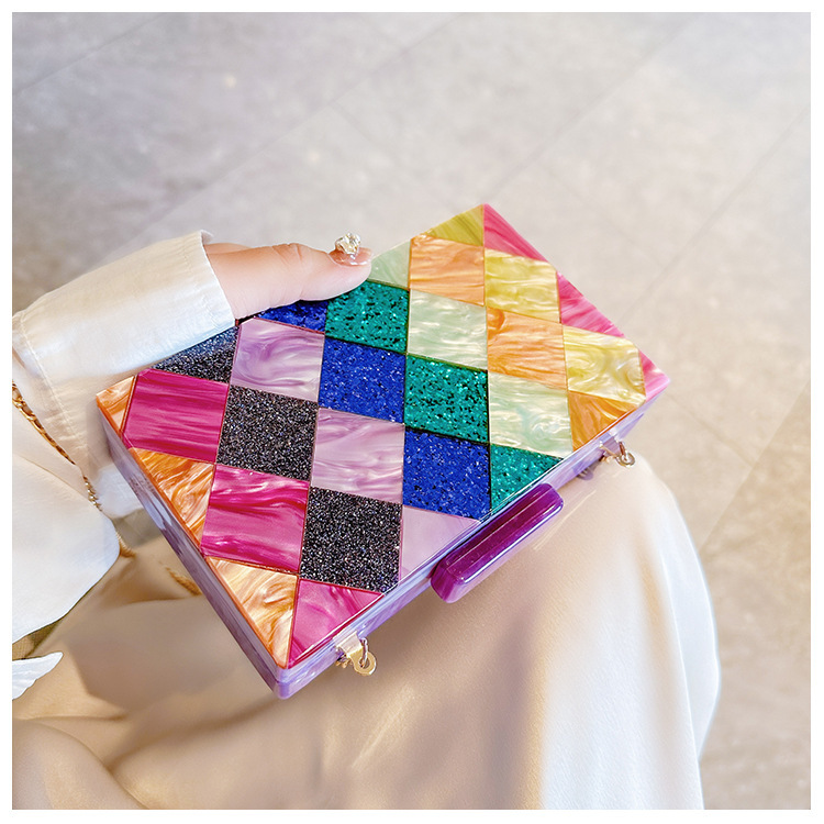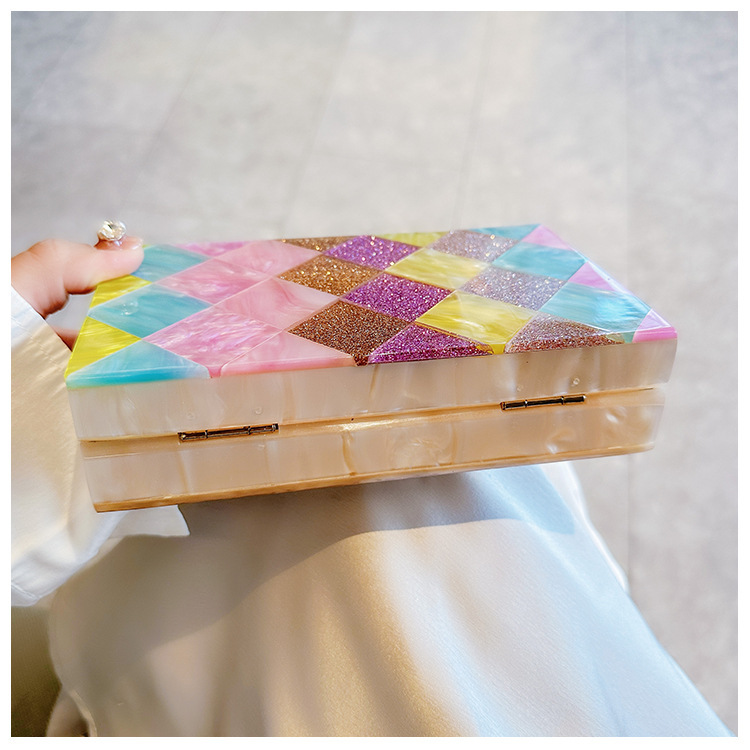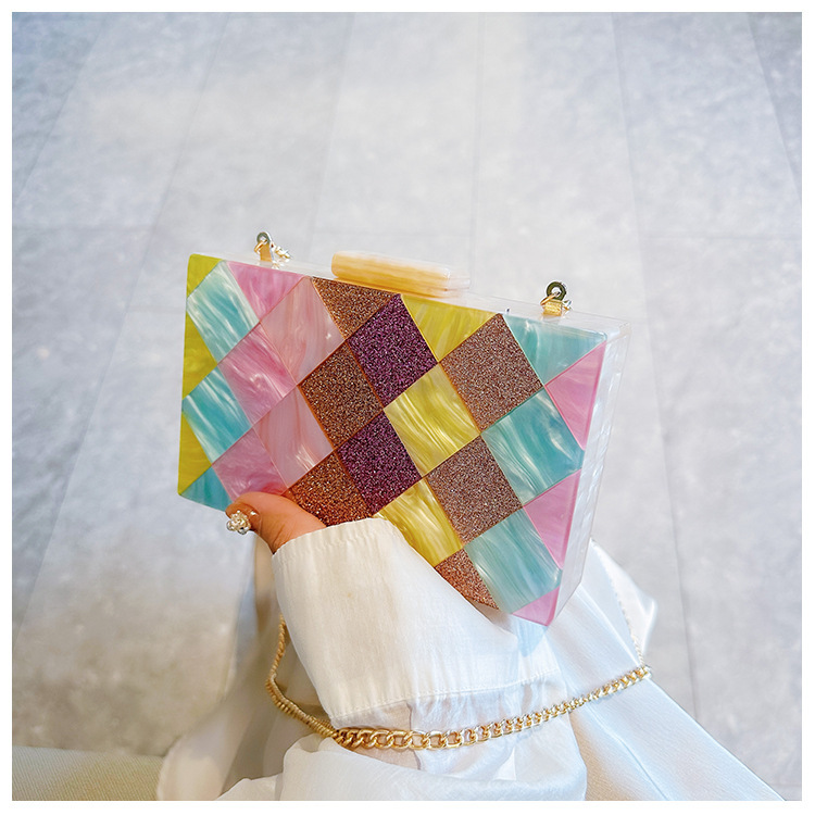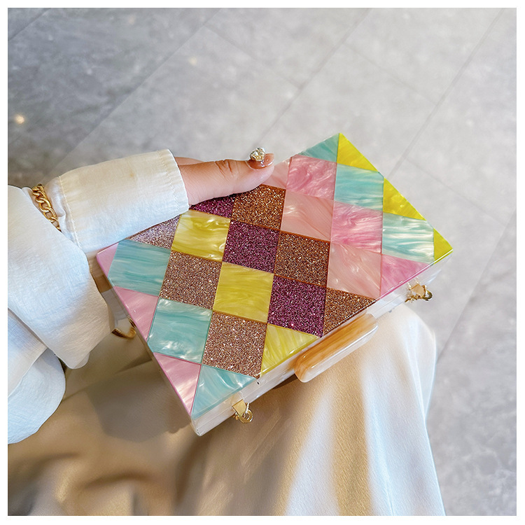 Nuevas bolsas de cena de damas transfronterizas empalmadas rango acrílico bolsas de cena de hombro de una sola mano de boda inclinada