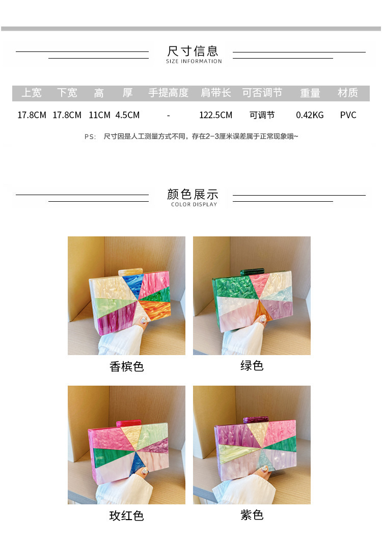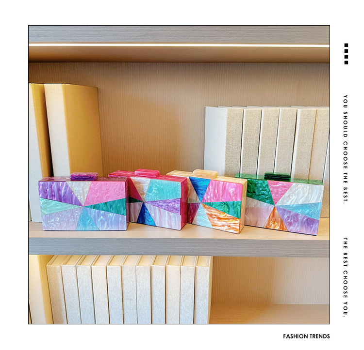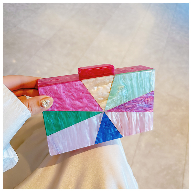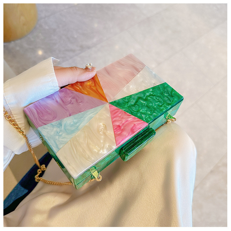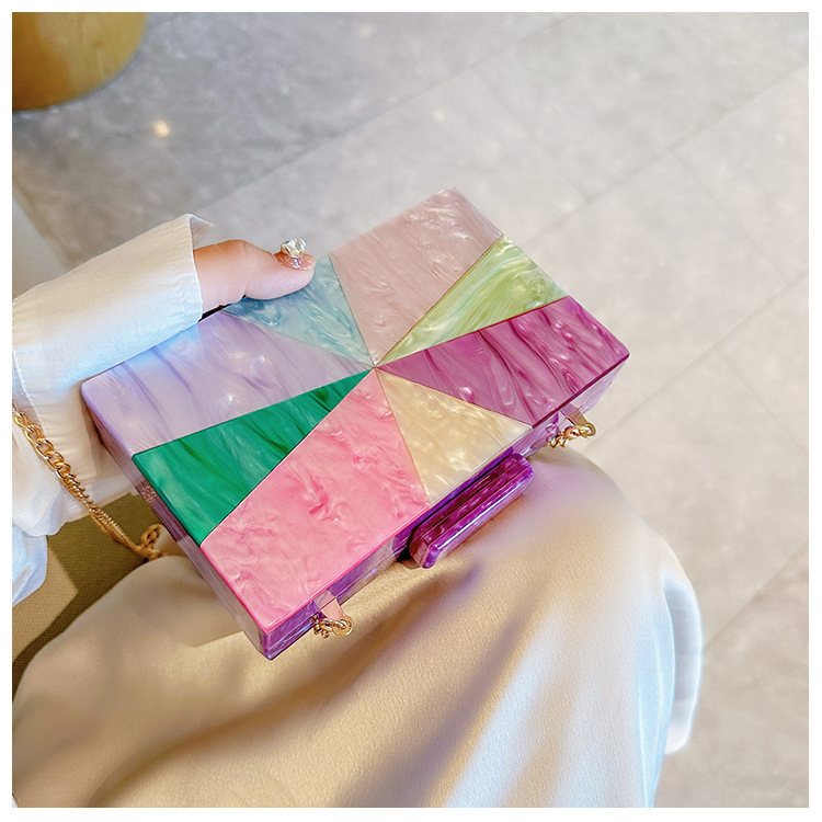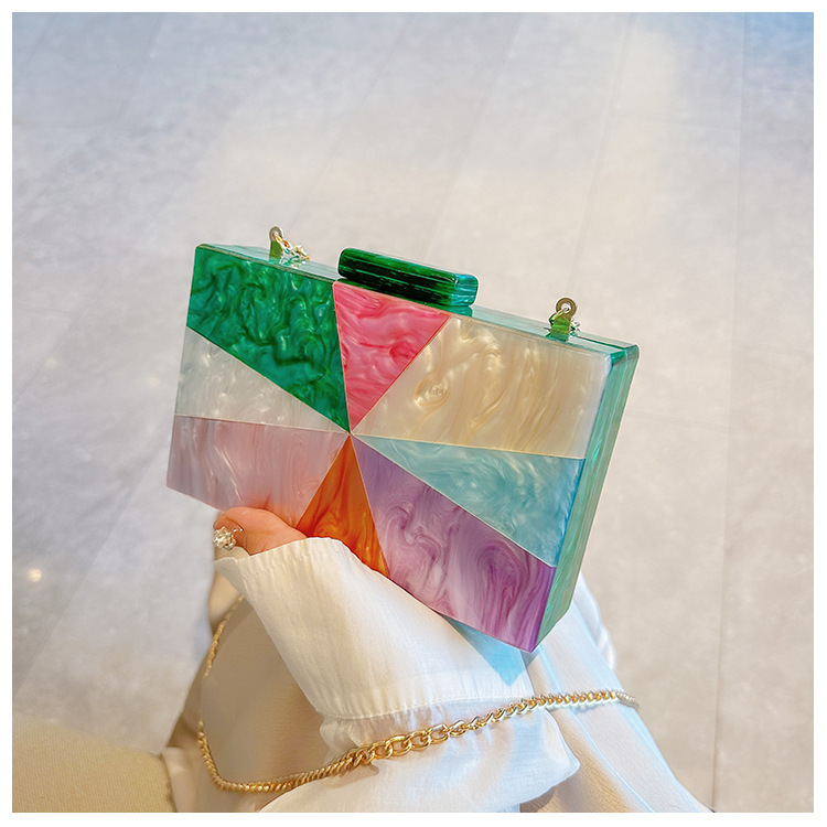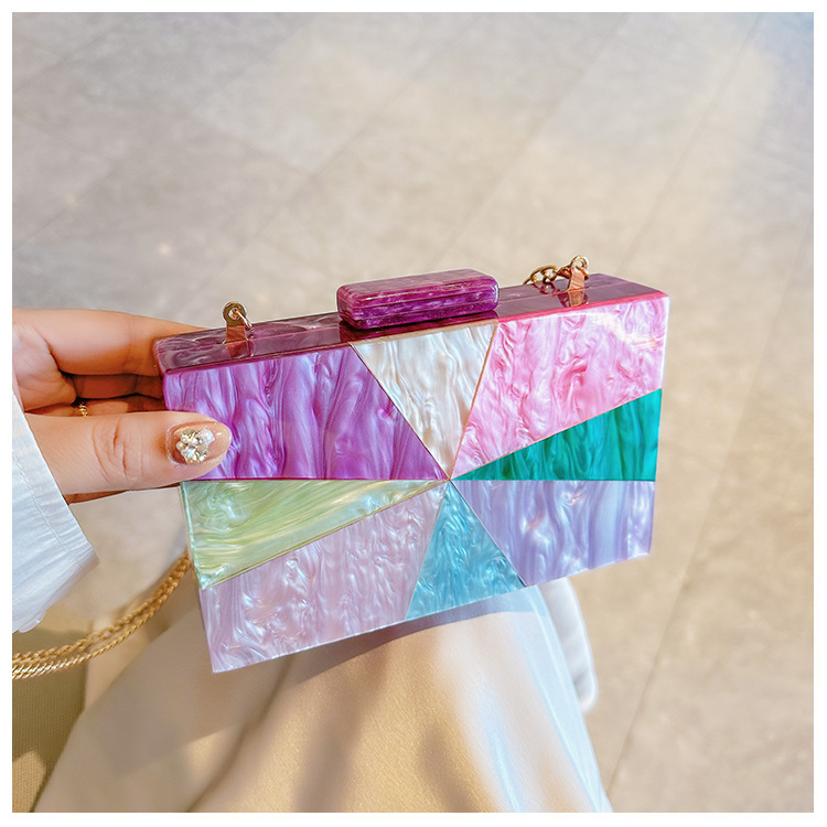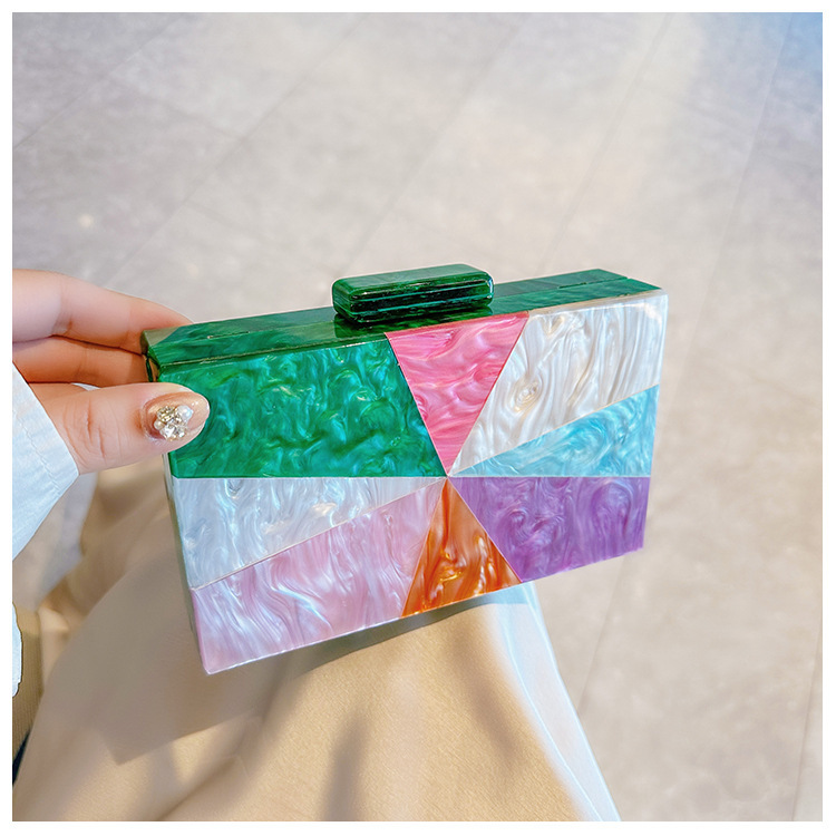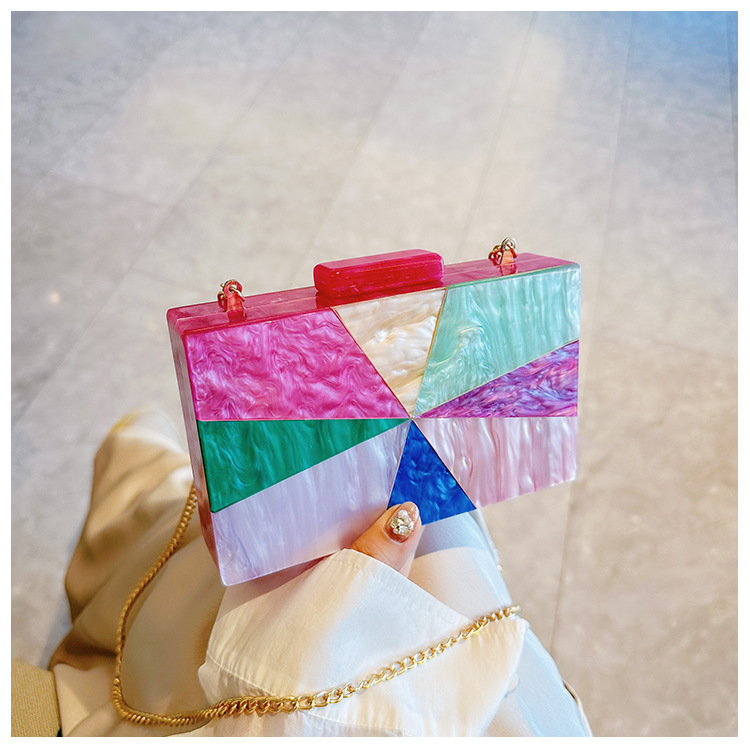 Comercio exterior transfronterizo damas nueva bolsa de acrílico empalmado bolsas de cena de hombro de una sola mano de la boda