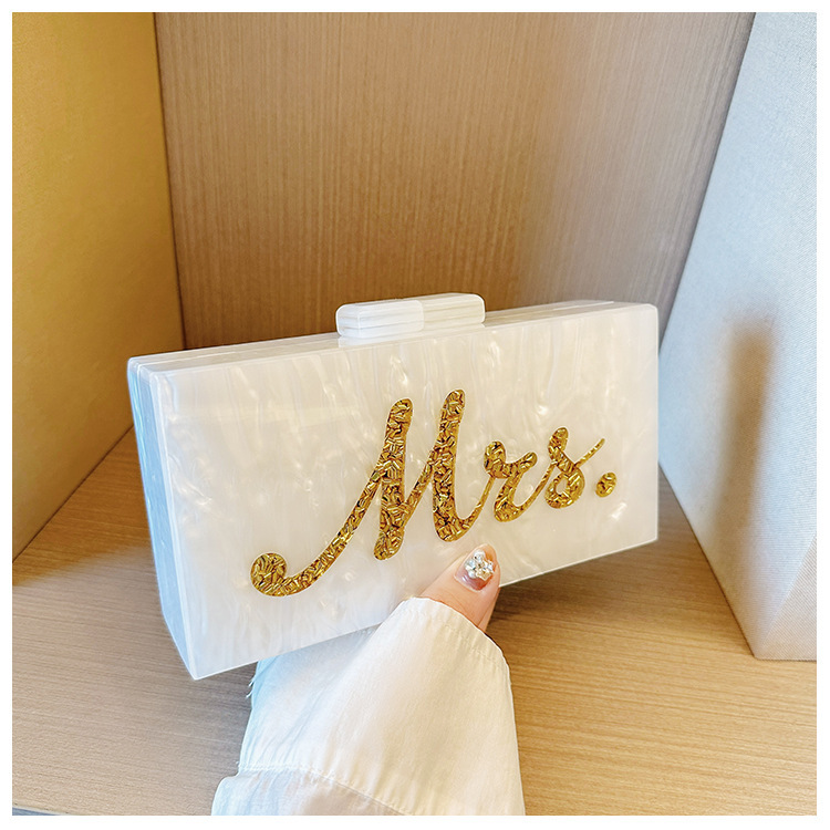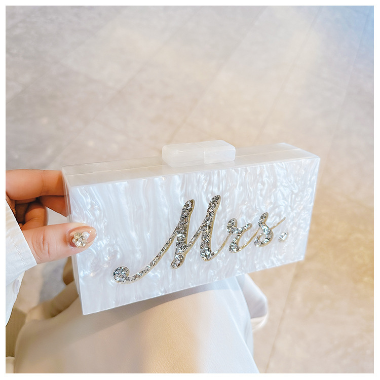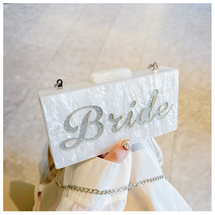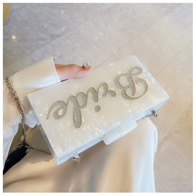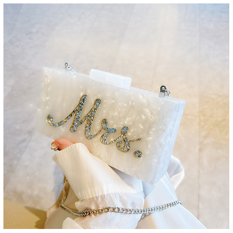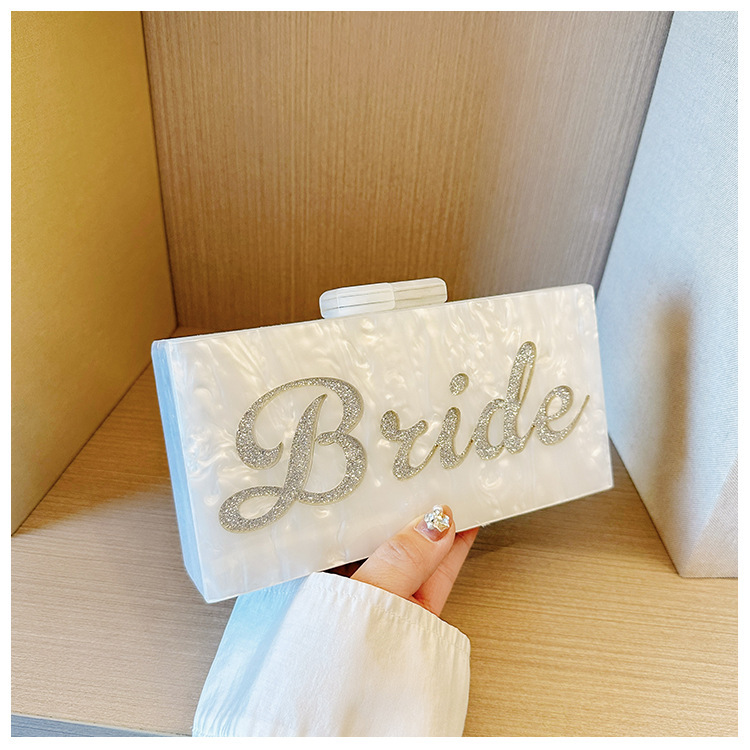 Nueva bolsa de cena de mujer alta sensibilidad letras de perlas blancas acrílicas bolsa de cena inclinada exquisita bolsa de mano de boda