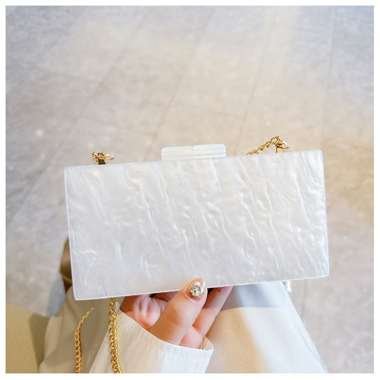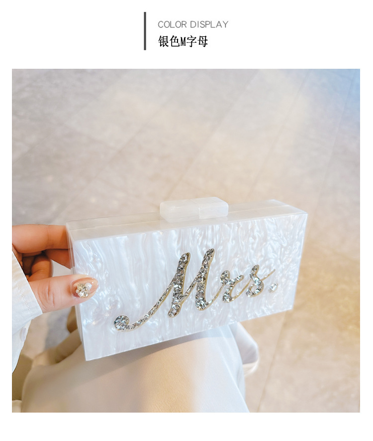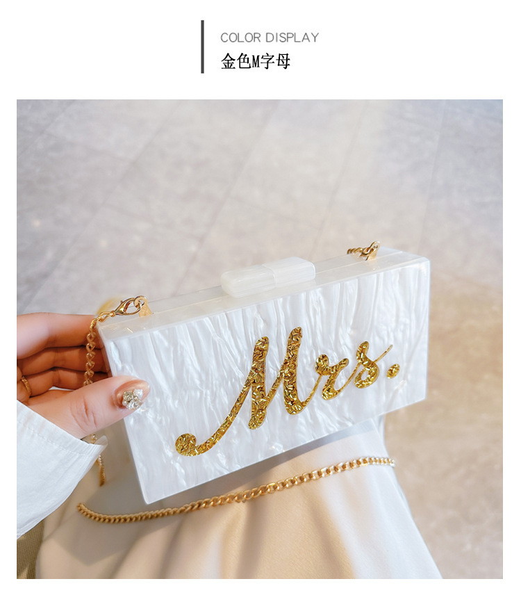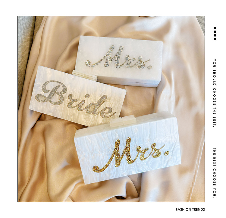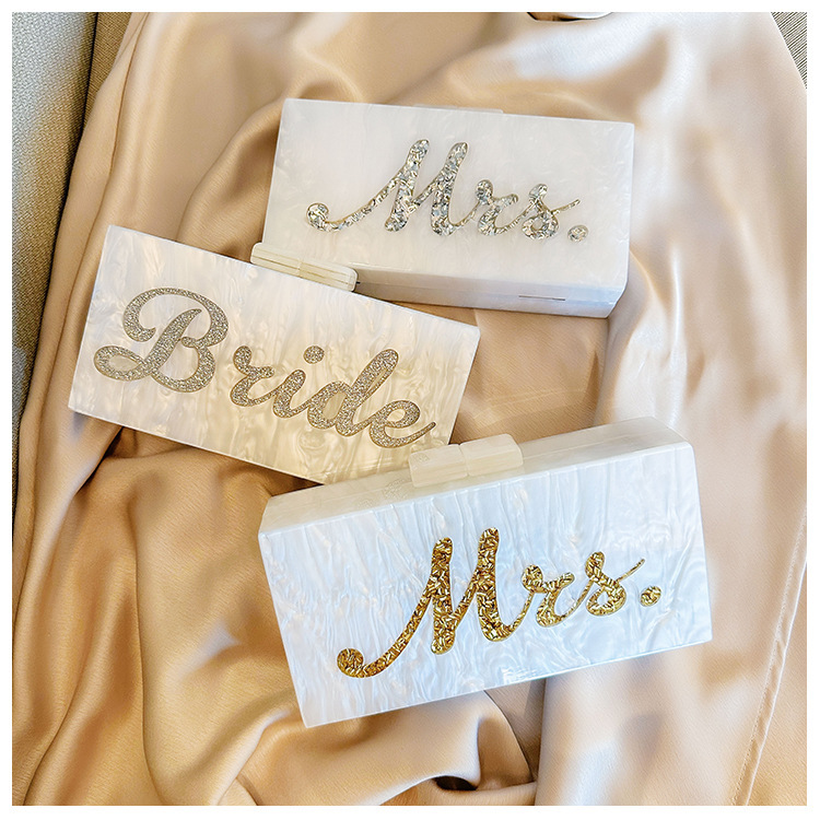 Nueva bolsa de cena de mujer alta sensibilidad letras de perlas blancas acrílicas bolsa de cena inclinada exquisita bolsa de mano de boda