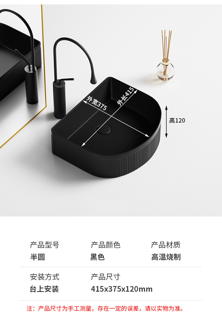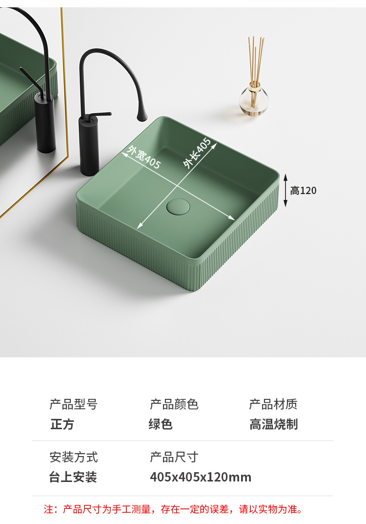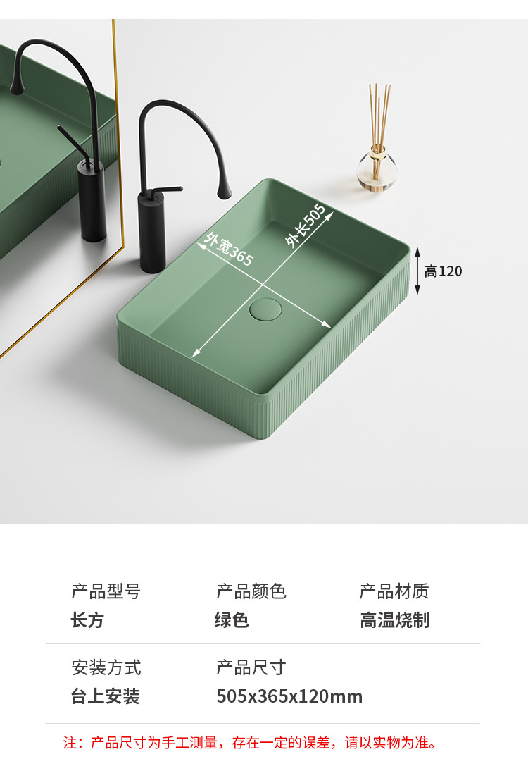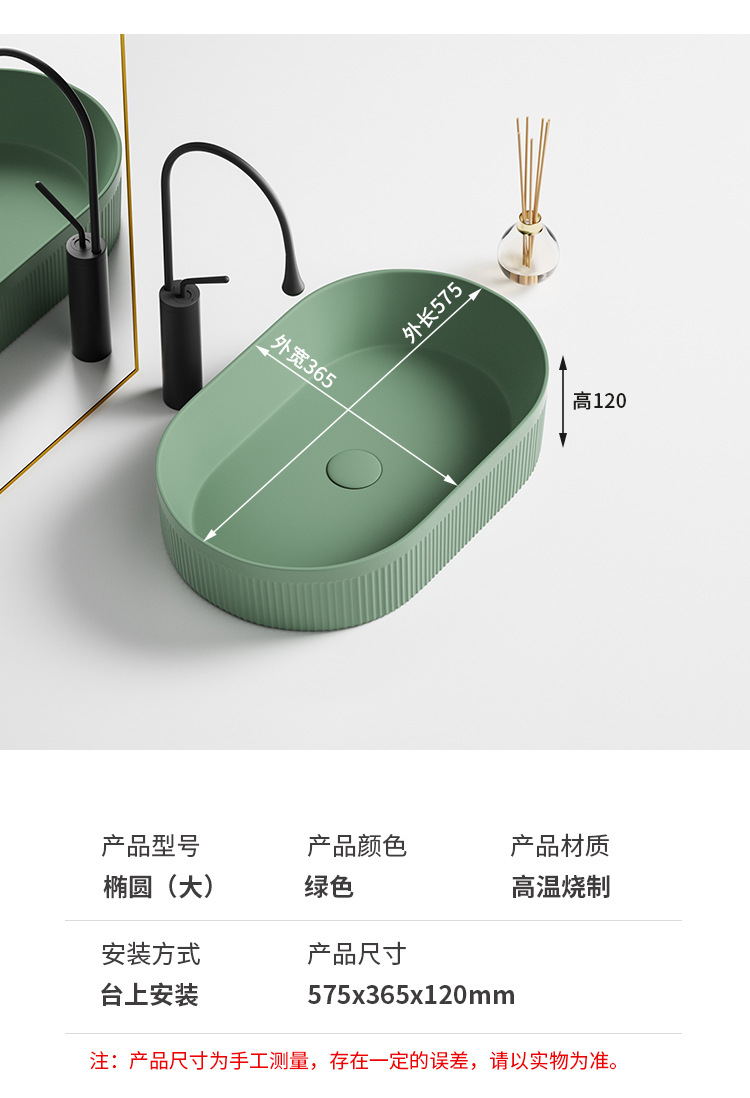 Tabla de arte lavabo cerámica doméstica lavabo facial baño balcón cuadrado redondo oval negro verde oscuro