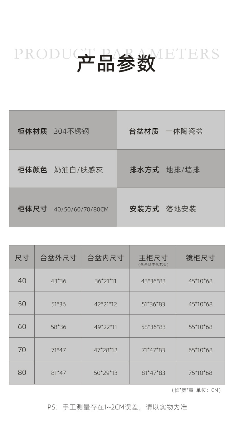 | Especificaciones | 40 acero inoxidable (un solo gabinete), 40 acero inoxidable (un solo gabinete + gabinete de espejo común), 50 acero inoxidable (un solo gabinete), 50 acero inoxidable (un solo gabinete + gabinete de espejo común), 50 gabinete de vidrio (un solo gabinete), 50 gabinete de vidrio (un solo gabinete + gabinete de espejo común), 60 acero inoxidable (un solo gabinete), 60 gabinete de vidrio (un solo gabinete + gabinete de espejo común), 60 gabinete de vidrio (un solo gabinete), 60 gabinete de vidrio (un solo gabinete + gabinete de espejo común), 70 acero inoxidable (un solo gabinete), 70 acero inoxidable (un solo gabinete + gabinete de espejo común), 70 gabinete de vidrio (un solo gabinete), 70 gabinete de vidrio (un solo gabinete + gabinete de espejo común), 80 acero inoxidable (un solo gabinete + gabinete de espejo común), 80 gabinete de vidrio (un solo gabinete), 80 gabinete de vidrio (un solo gabinete + gabinete de espejo común), 60 gabinete de vidrio (un solo gabinete + gabinete de espejo inteligente), 70 gabinete de vidrio (un solo gabinete + gabinete de espejo inteligente), 80 gabinete de vidrio (un solo gabinete + gabinete de espejo inteligente) |