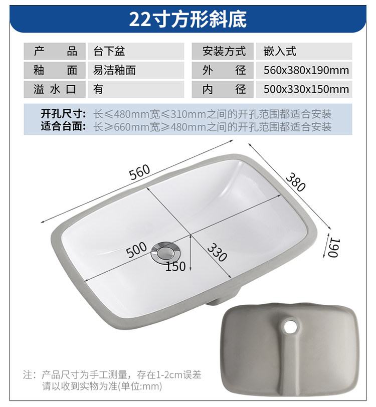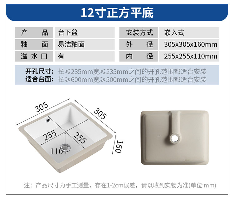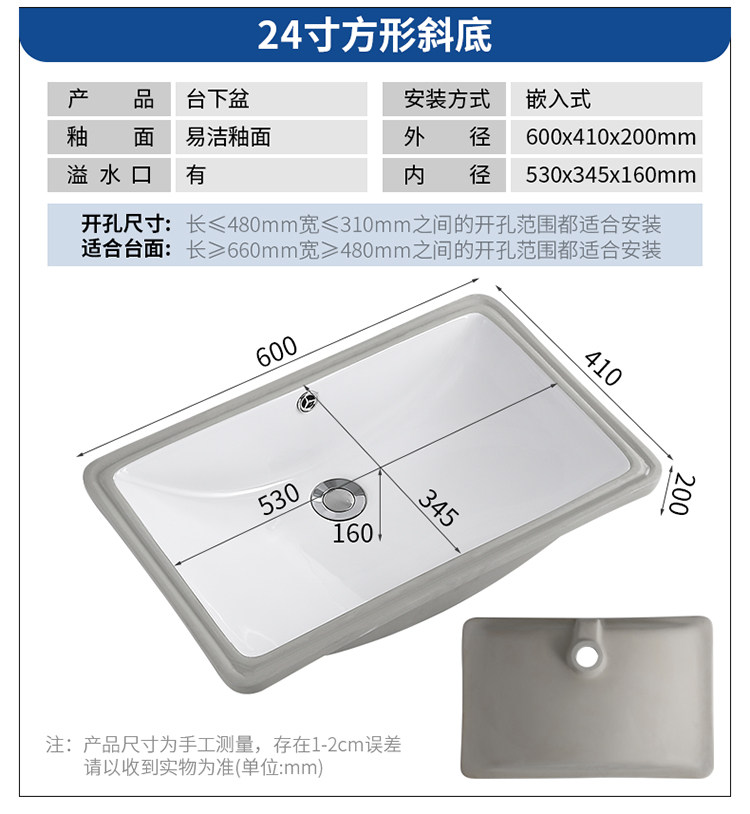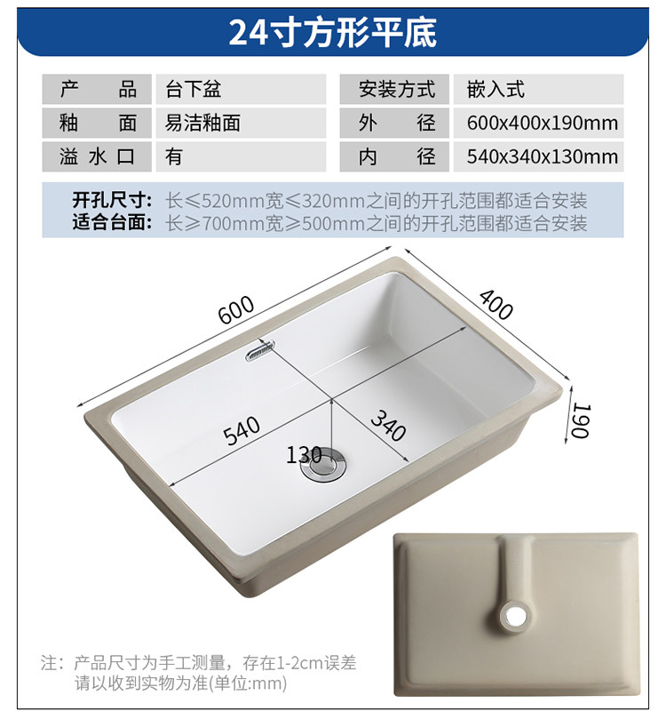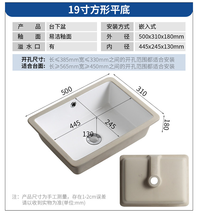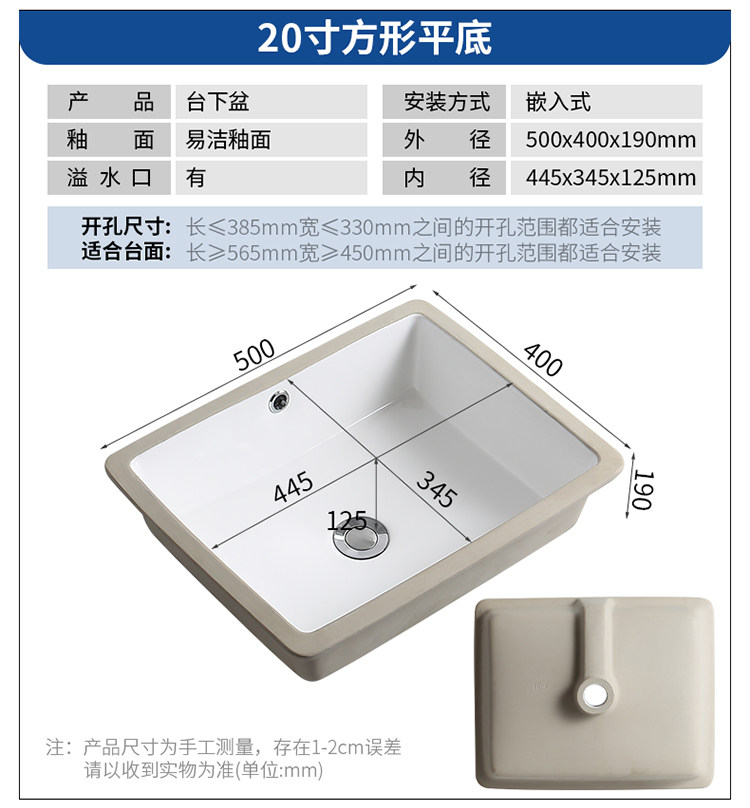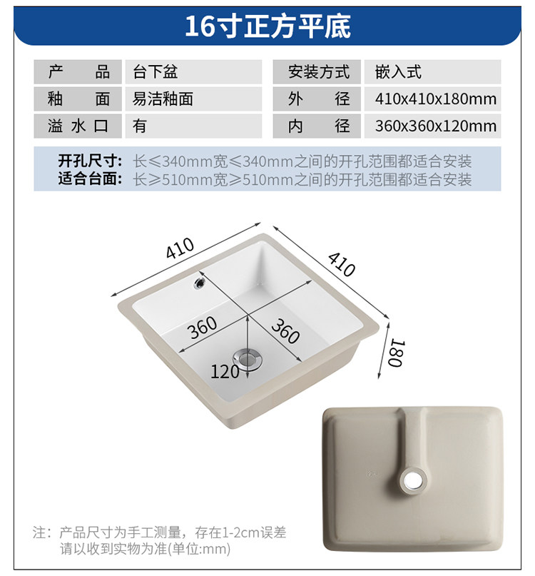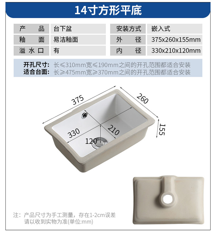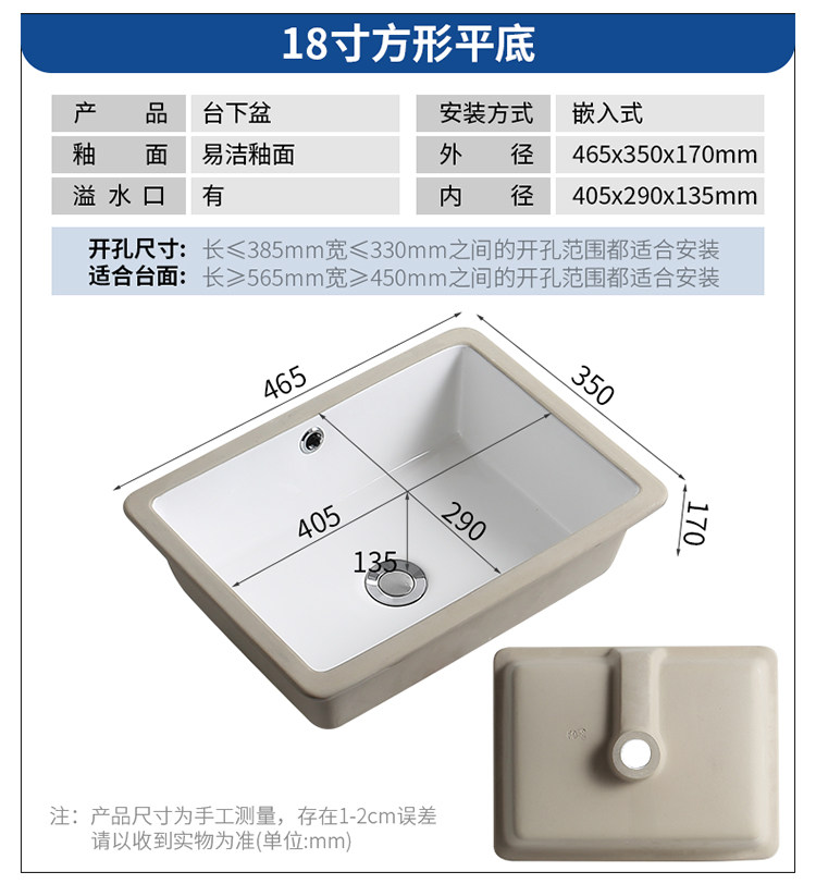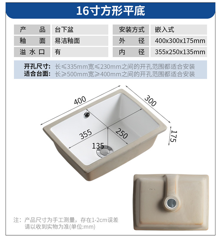 Taja de cerámica tamaño elíptico lavabo piscina balcón incrustado casero cuadrado hotel lavabo único