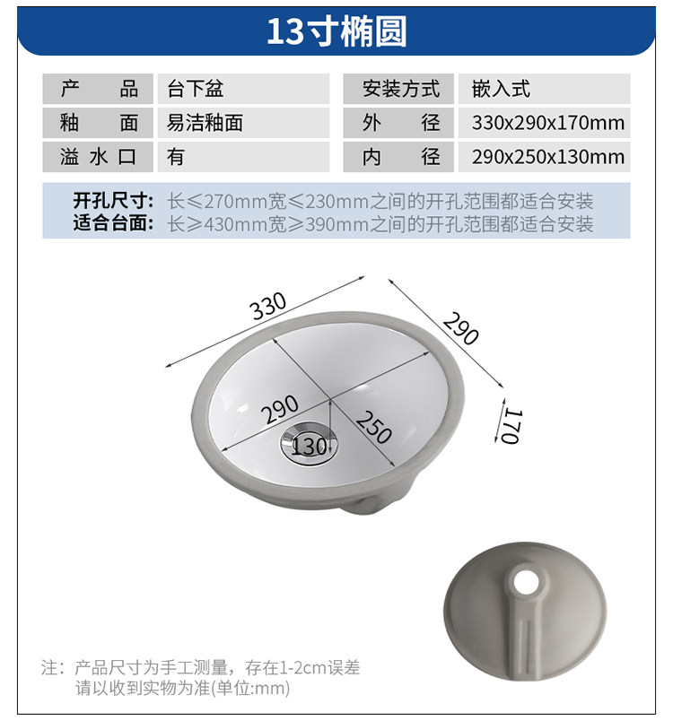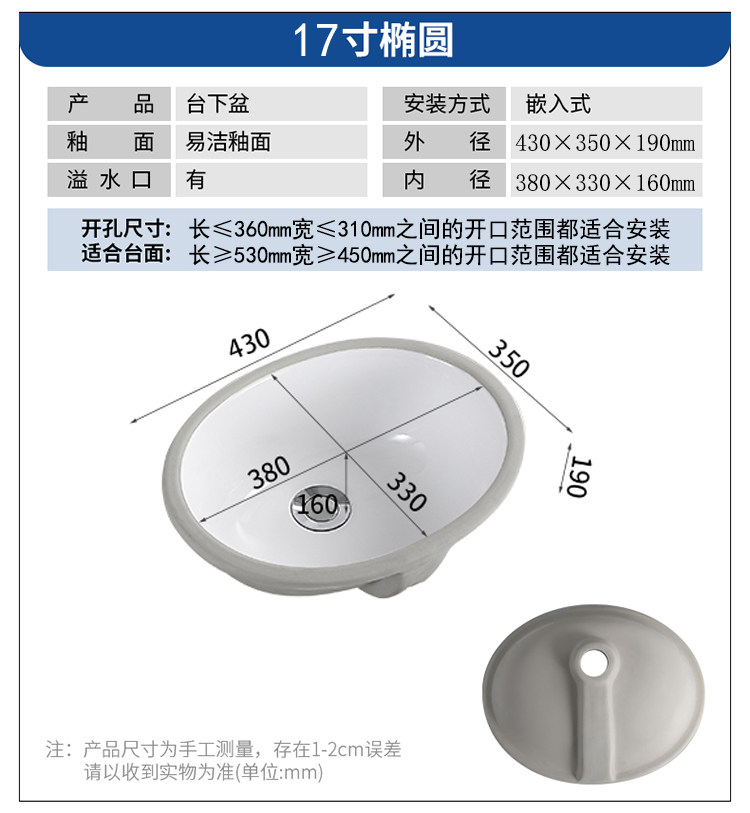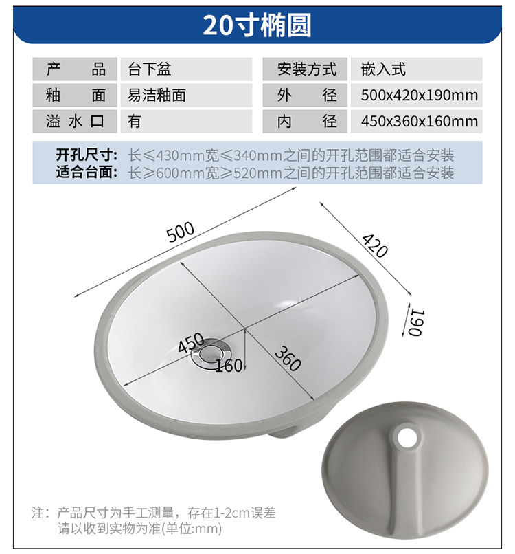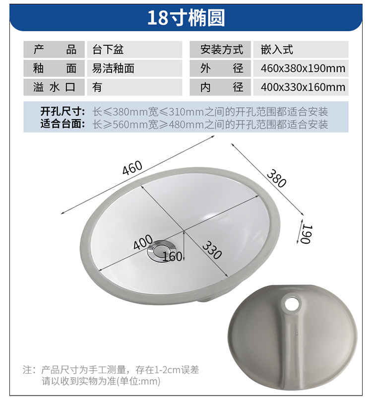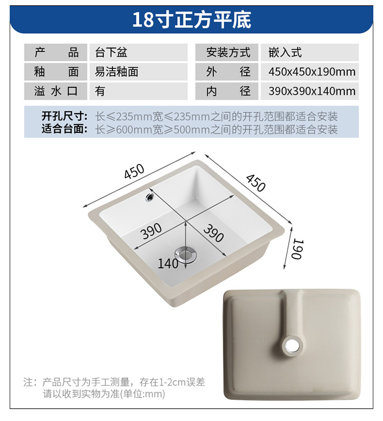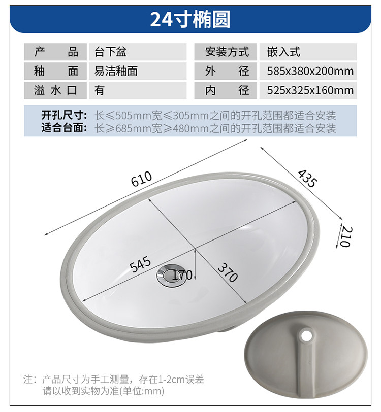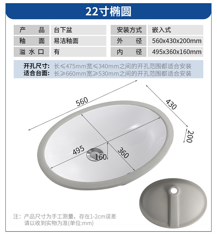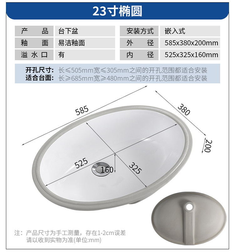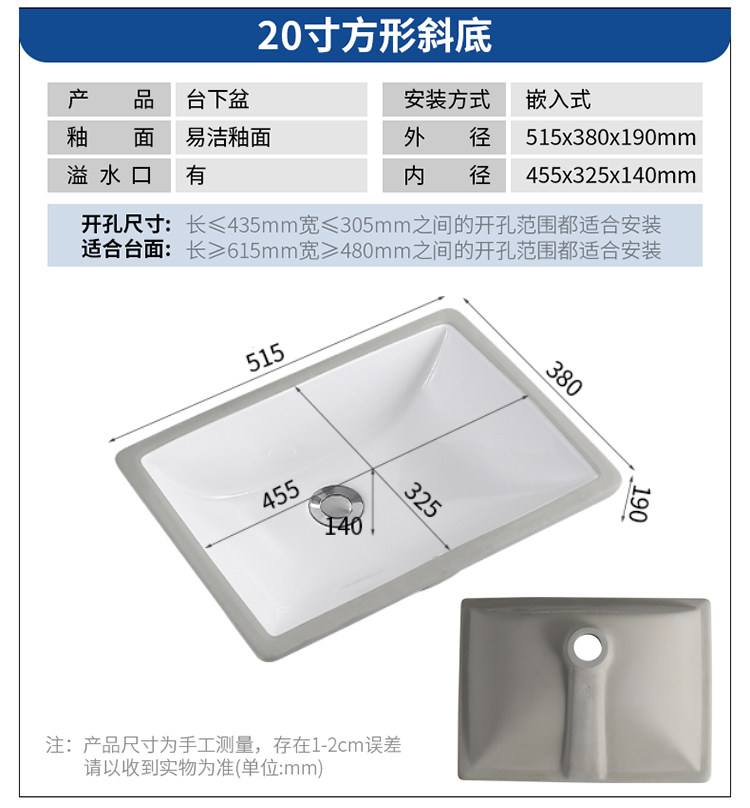 Taja de cerámica tamaño elíptico lavabo piscina balcón incrustado casero cuadrado hotel lavabo único
