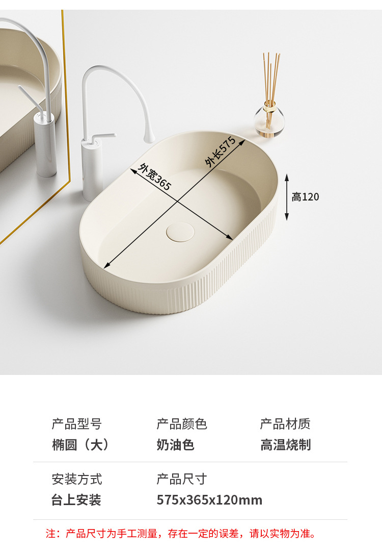 Cerámica de viento crema lavabo lavabo arte lavabo balcón lavabo lavabo redondo cuadrado oval