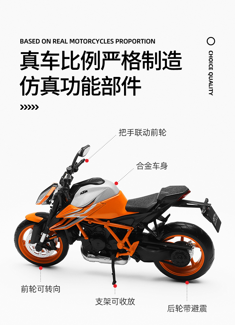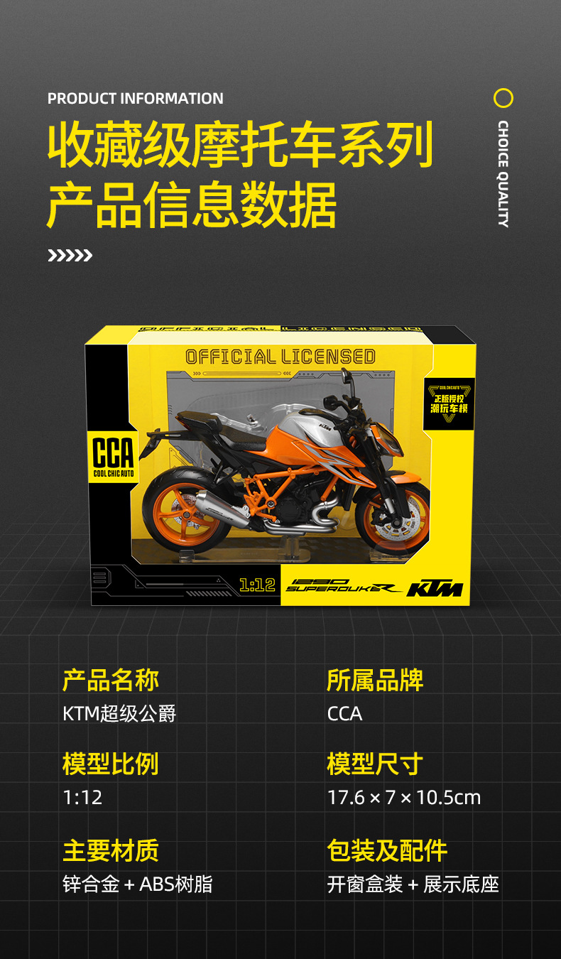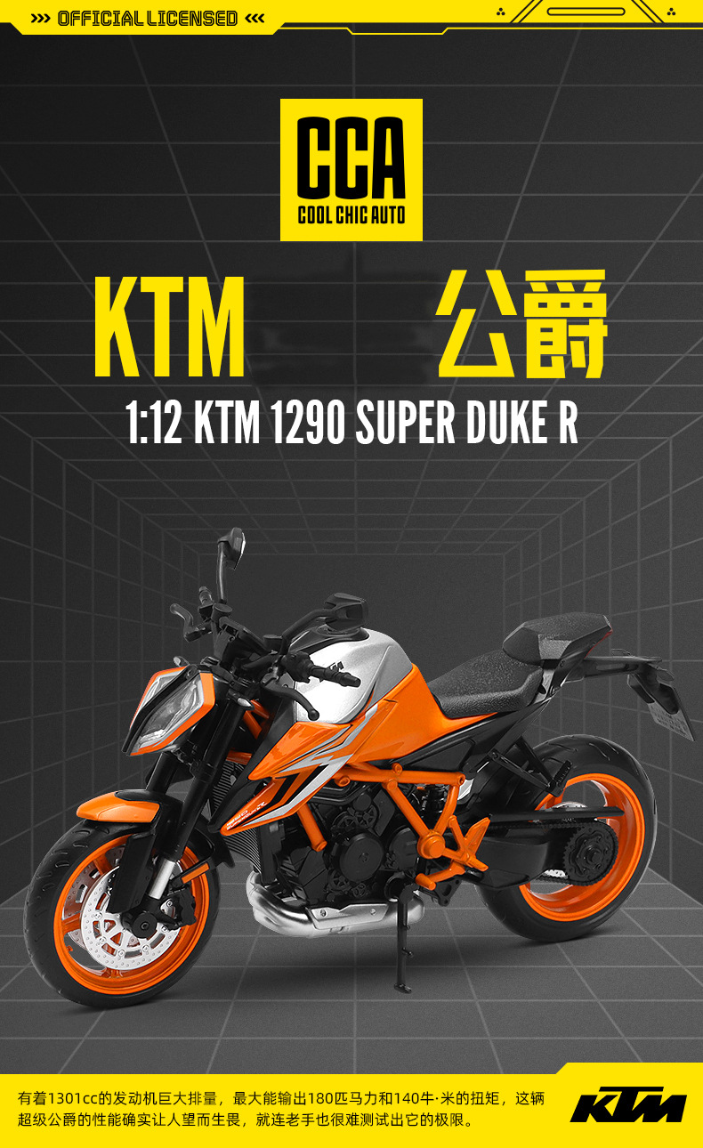 CCA 1: 12 KTM1290 Duke modelo de simulación de aleación de motocicleta para niños juguetes coleccionistas adornos