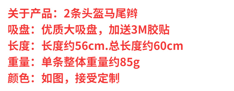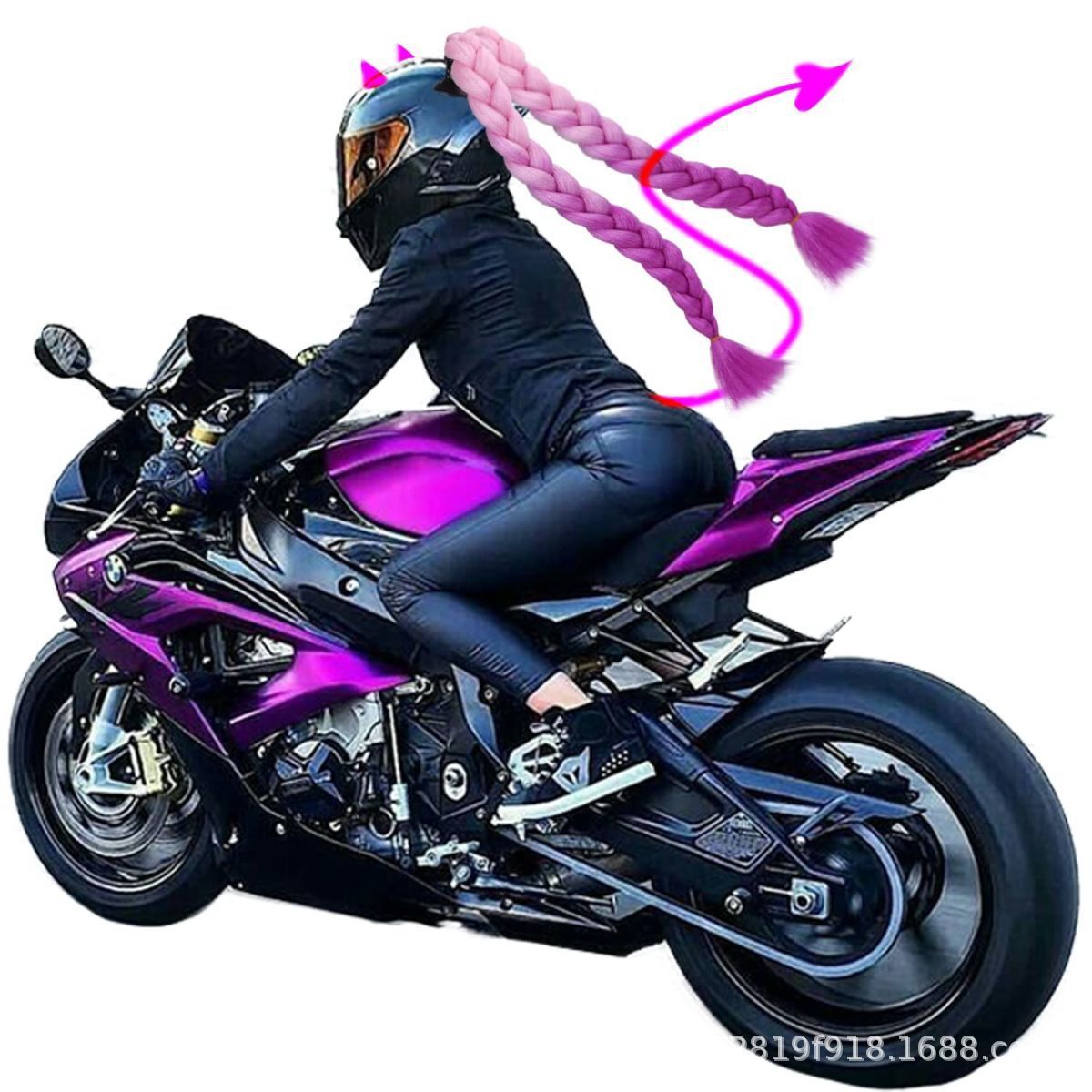 Casco de Motocicleta con Decoración de Peluca Colorida, Trenzas, Doble Cola de Caballo, Estilo Motero, con Ventosa, 60 cm