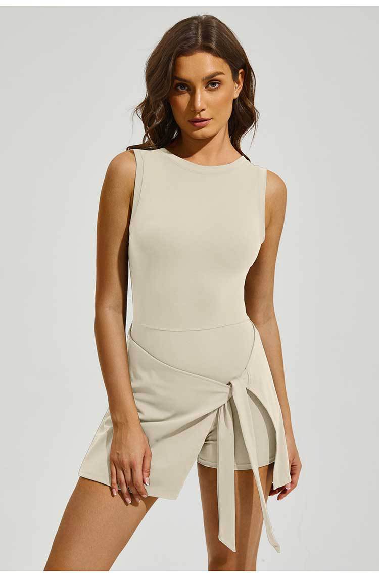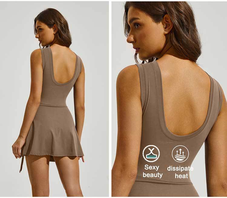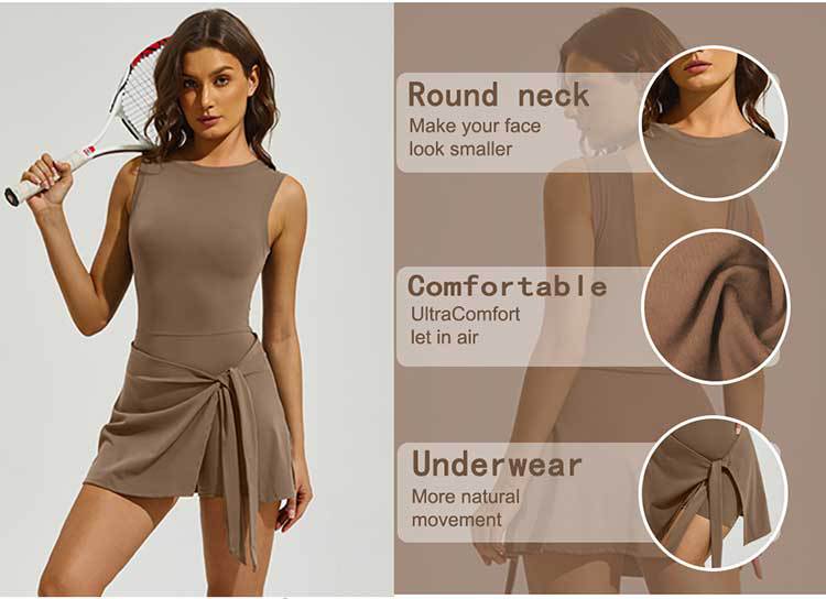 Falda deportiva de fitness al aire libre de primavera y verano transfronteriza Falda cruzada Falda de tenis de dos piezas antiluminante y transpirable de una pieza
