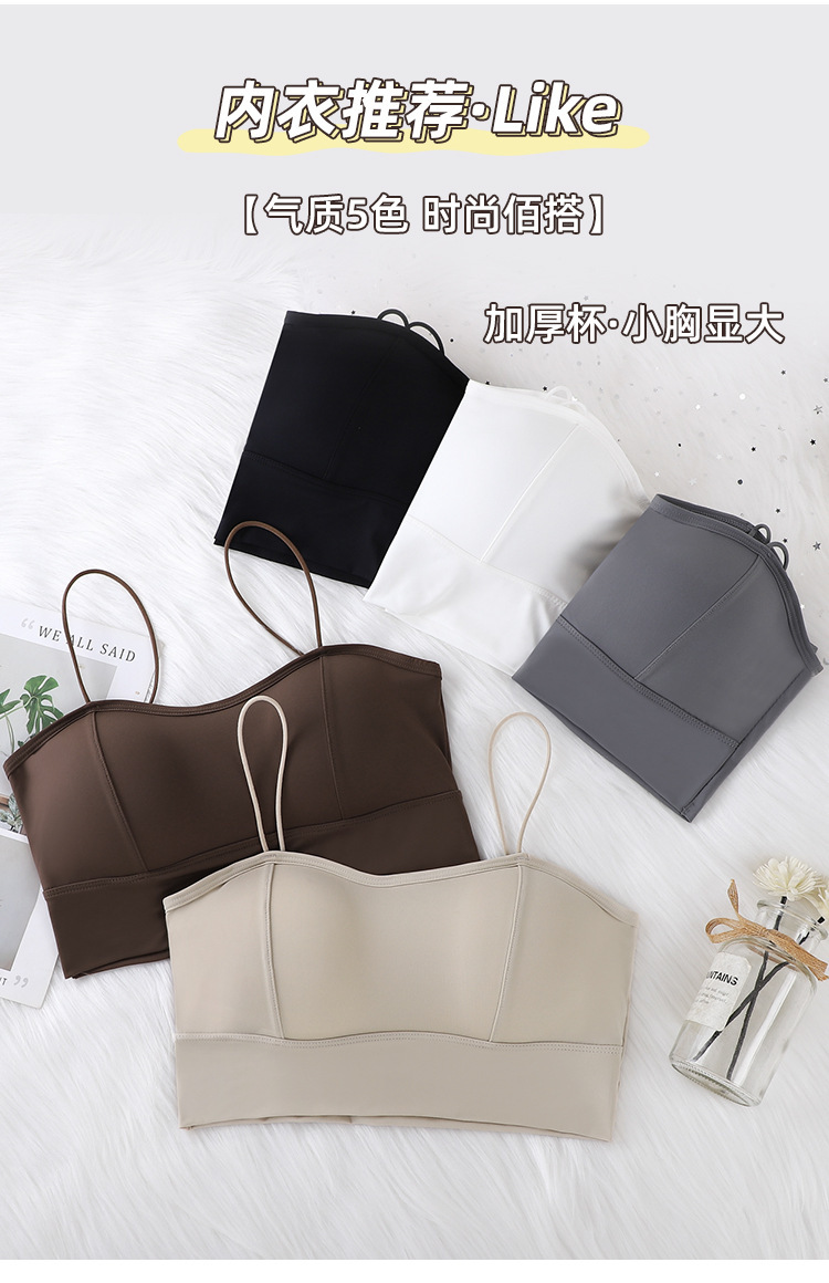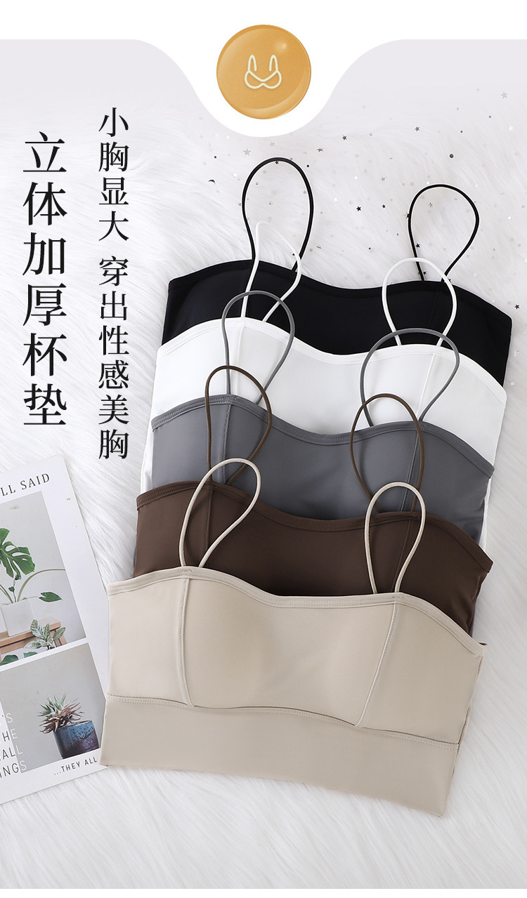 Seda de hielo, tirantes finos para niñas, camisola, gran U de verano, gran espalda sin espalda, almohadilla gruesa para el pecho, base desmontable para evitar la luz