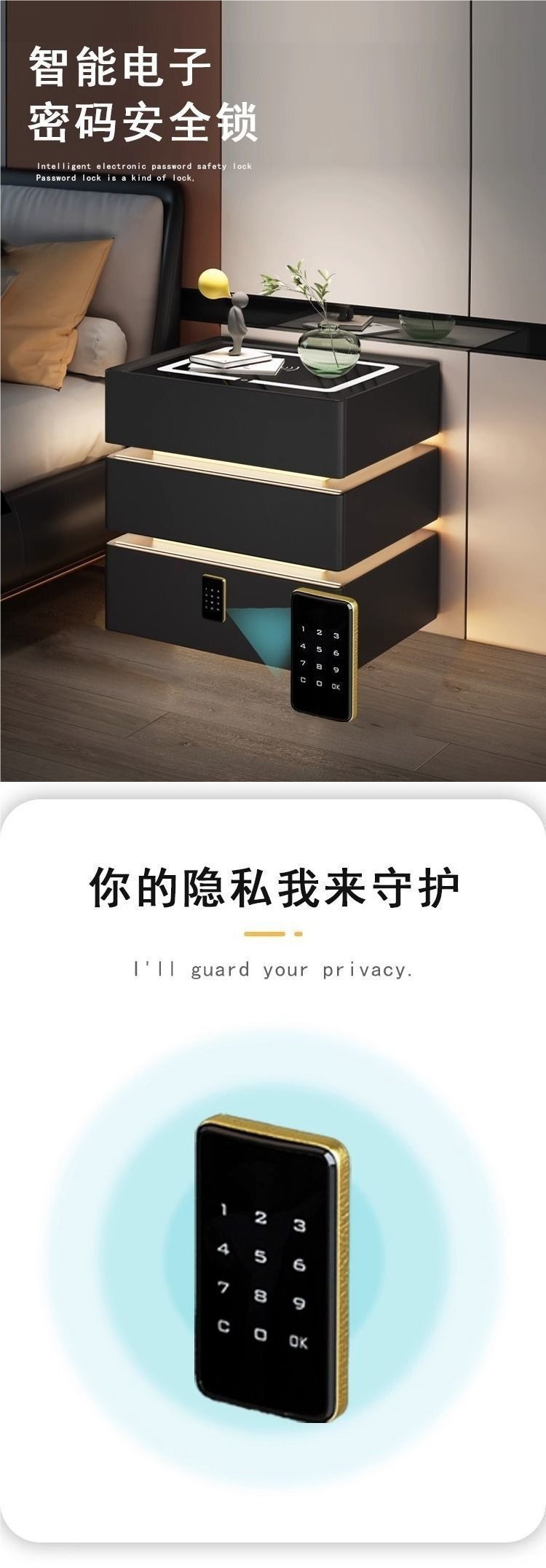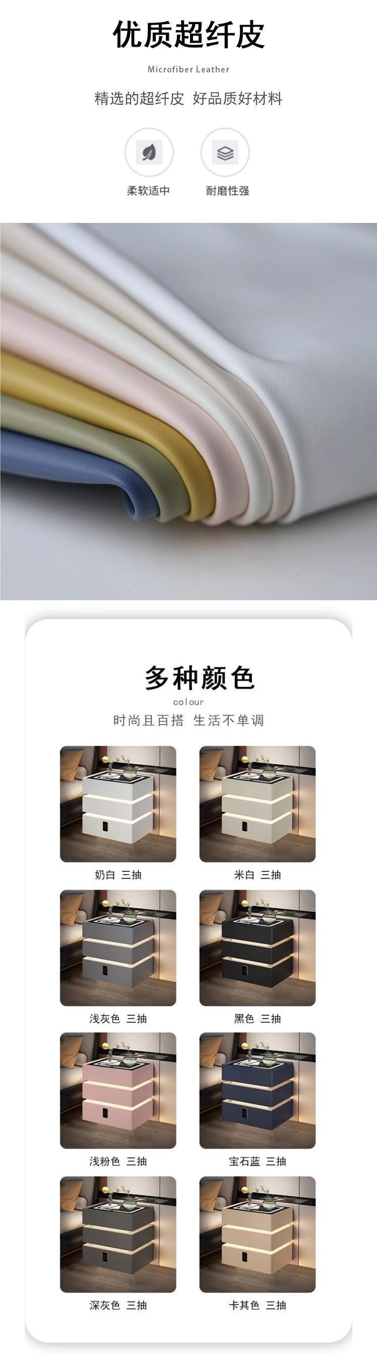 Moda inteligente mesita de cabecera de cuero sintético cuero amón combinado con cajón de madera sólida con lámpara LED de huellas dactilares bloqueo inalámbrico