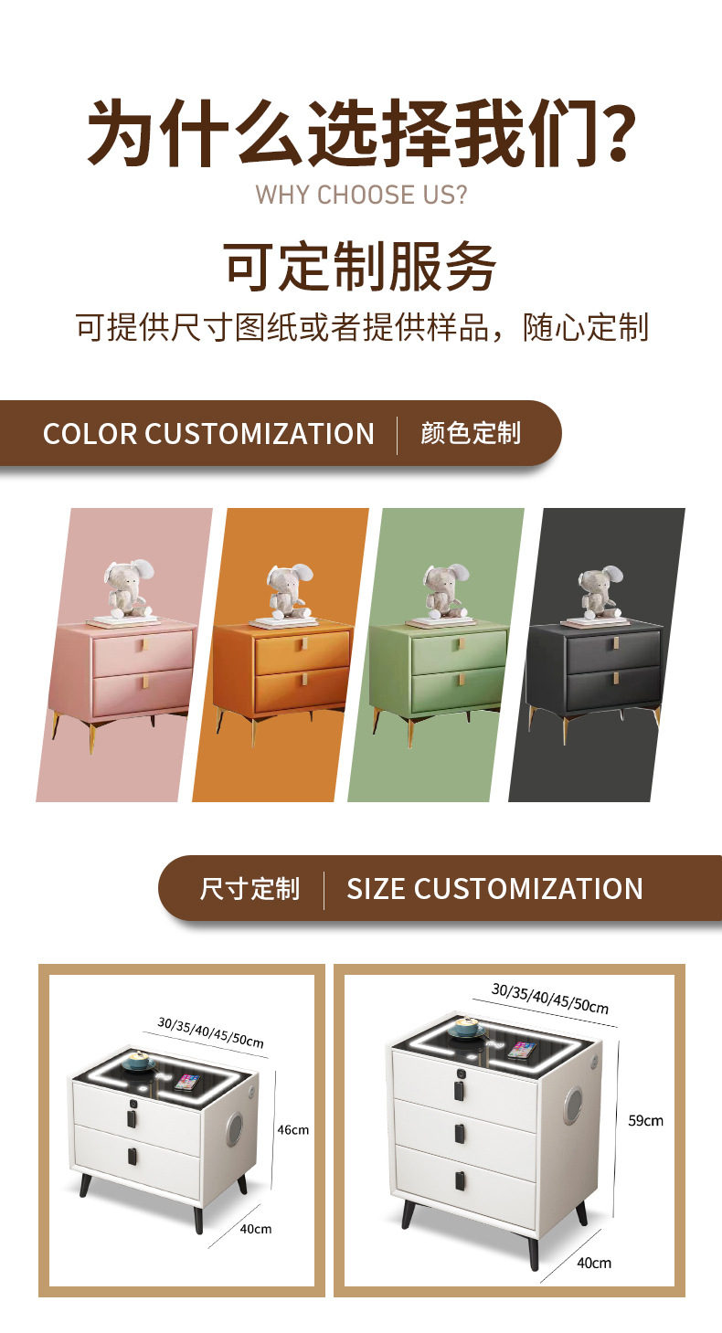 Mesa de cabecera inteligente de madera sólida de tres tiros gabinete multifuncional para dormitorios domésticos muebles modernos y simples armario de cabecera