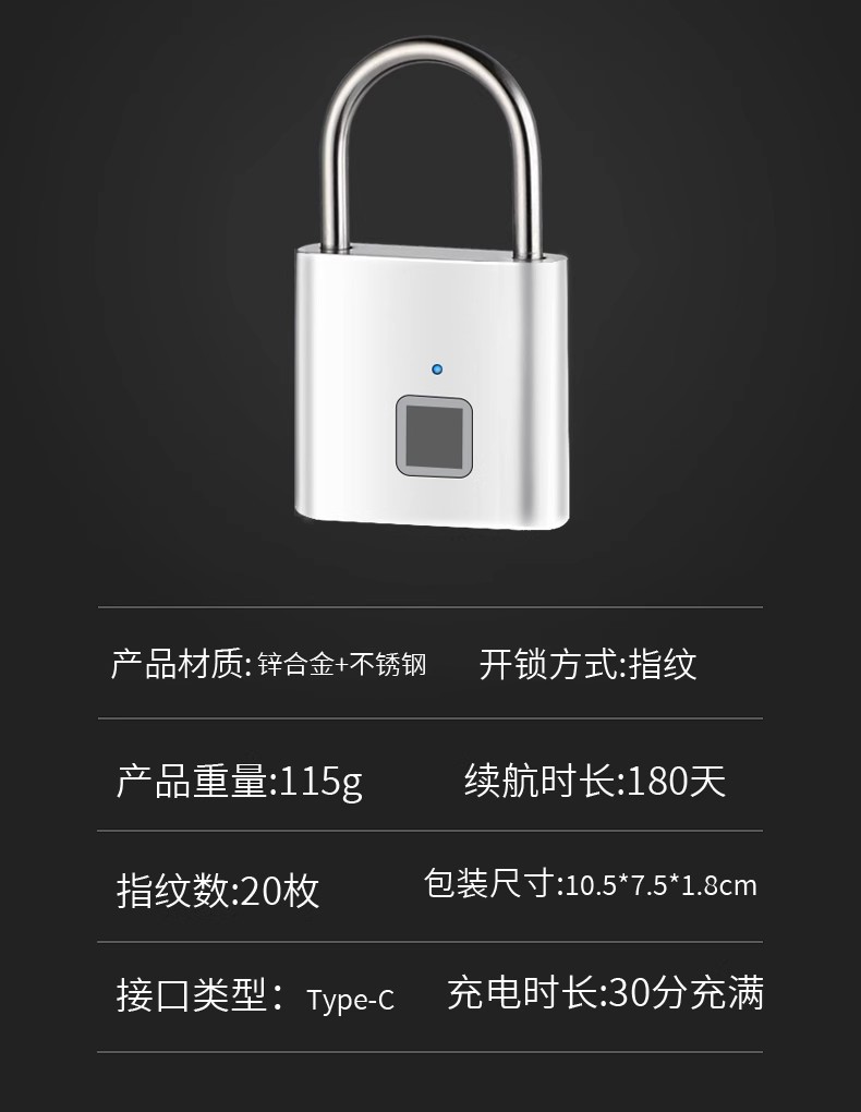| Especificaciones | 20 juegos de huellas dactilares - Tipo-C puerto de carga de plata, 20 juegos de huellas dactilares - Tipo-C puerto de carga de negro, bloqueo de contraseña impermeable - 10 juegos de contraseña, bloqueo de huellas dactilares impermeable - 20 juegos de huellas dactilares, mini bloqueo de huellas dactilares - nuevo azul, mini bloqueo de huellas dactilares - oro noble, oro de haz corto - contraseña de cuatro dígitos, oro de haz largo - contraseña de cuatro dígitos, haz largo - contraseña de cuatro dígitos, haz corto - contraseña de cuatro dígitos. |