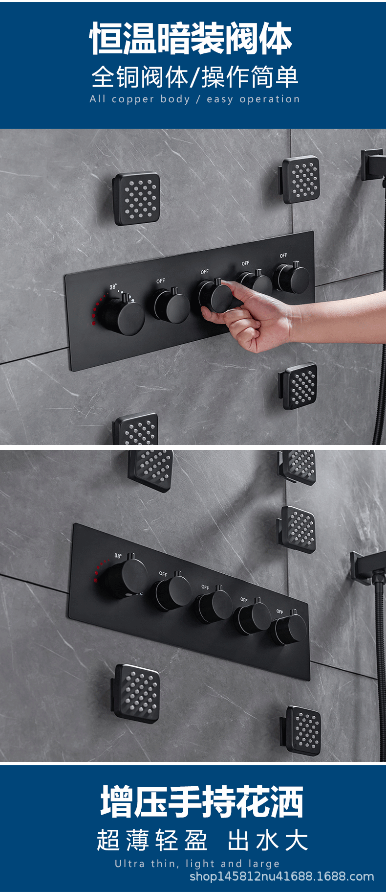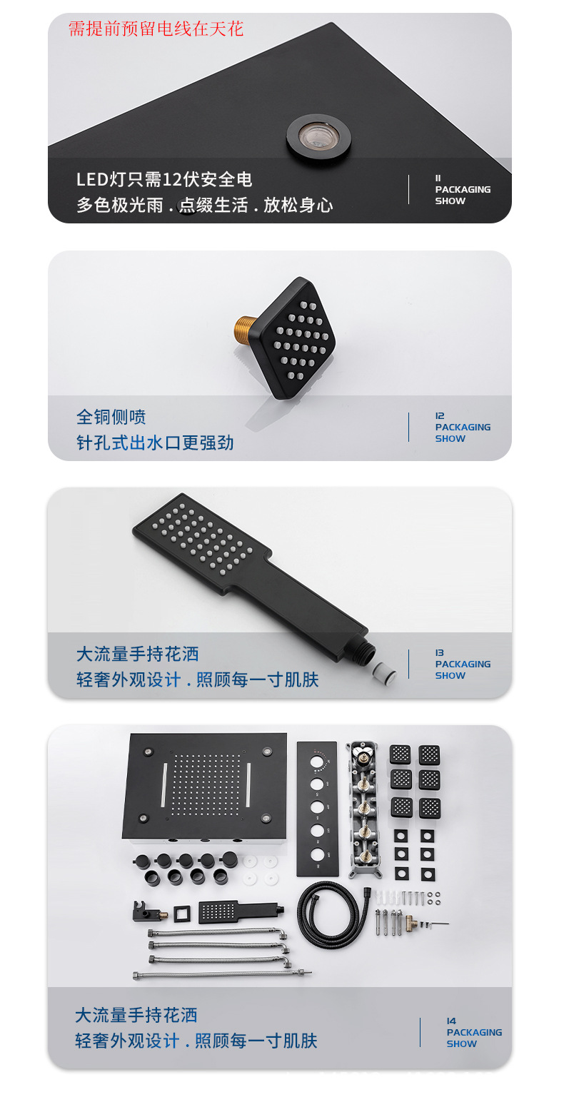 Ducha de cortina con temperatura constante, ducha de ducha oculta, ducha de baño, ducha de ducha lateral y espalda, ducha de ducha presurizada con luz