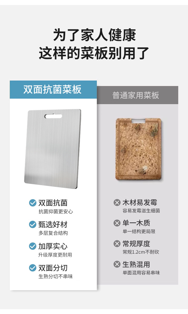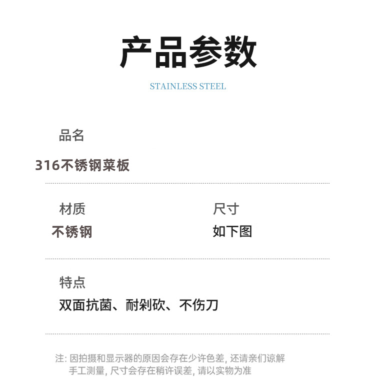 Tabla de cortar de acero inoxidable Panel grueso Cocina Hogar y panel Tabla de cortar Tabla de cortar de frutas multifuncional antibacteriana y a prueba de moho