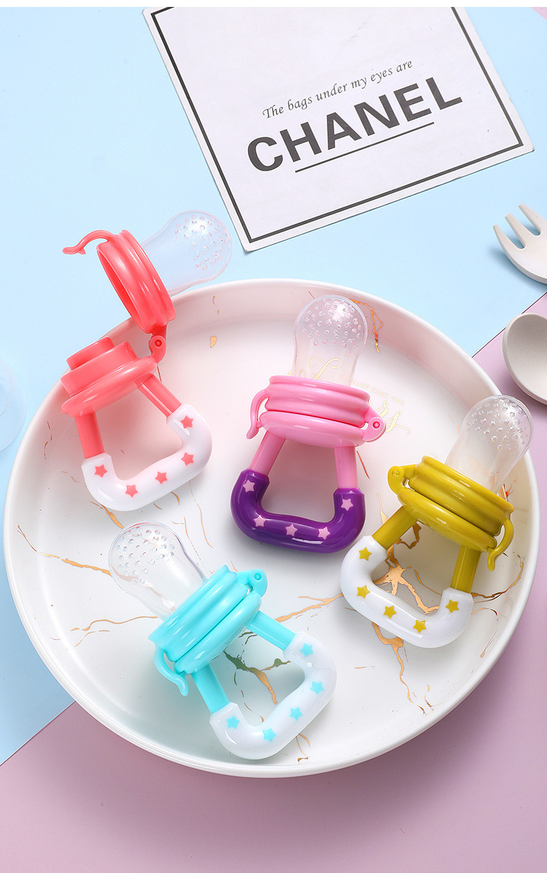 Fabricante directo para bebés silicona mordida mordida le bolsas de frutas suplementarias calmar goma dental mordida estrella mordida le