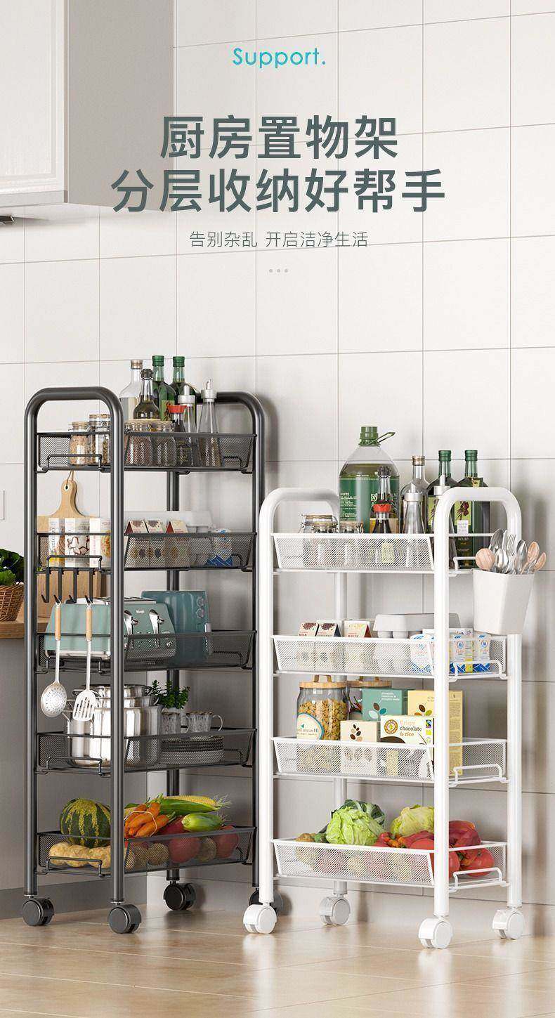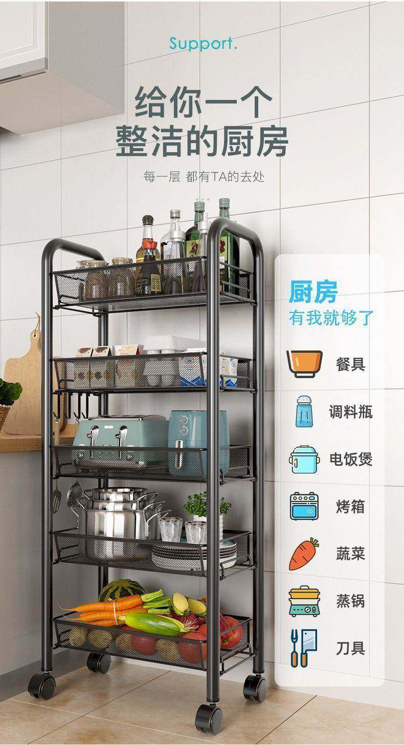 Estante de almacenamiento de cocina estante de almacenamiento móvil de piso multicapa carro de acero al carbono estante de misceláneos cesta de frutas y verduras