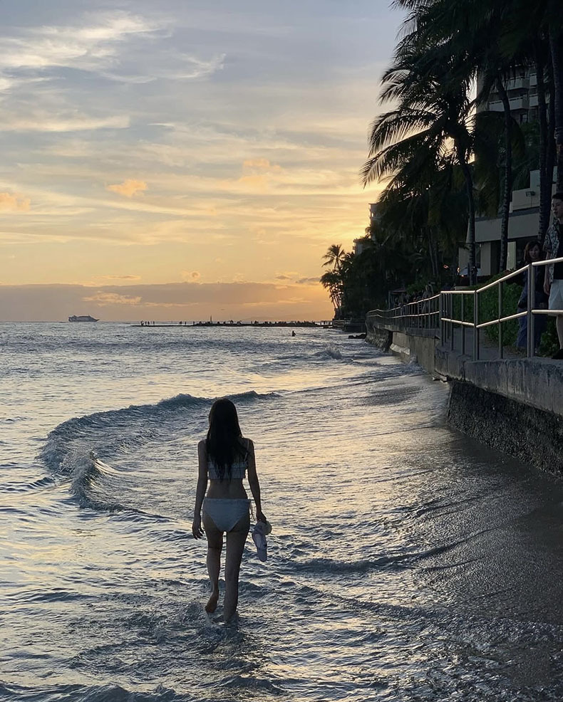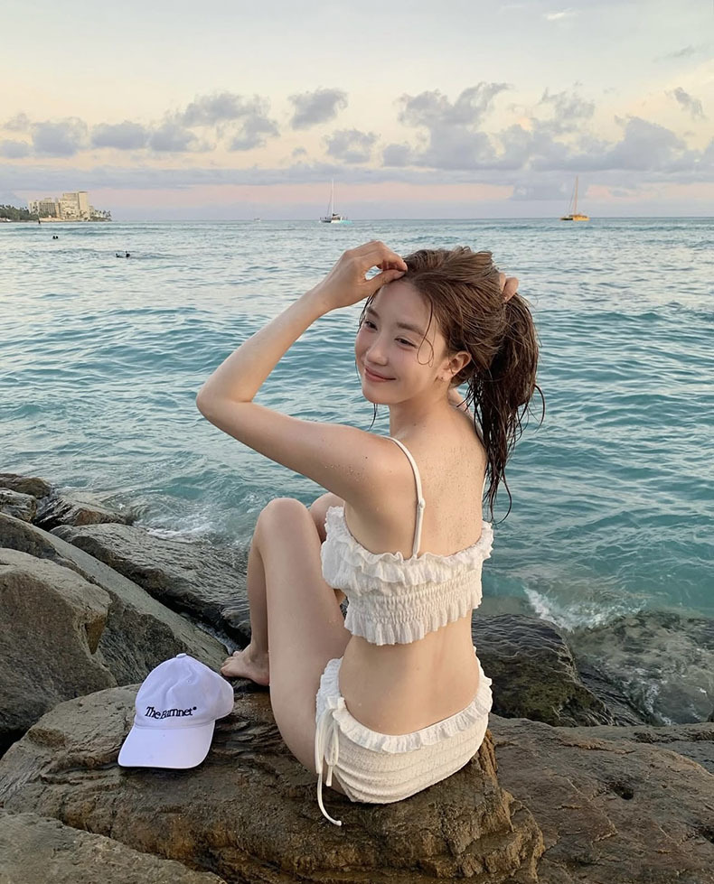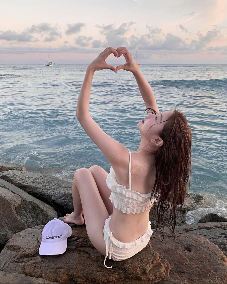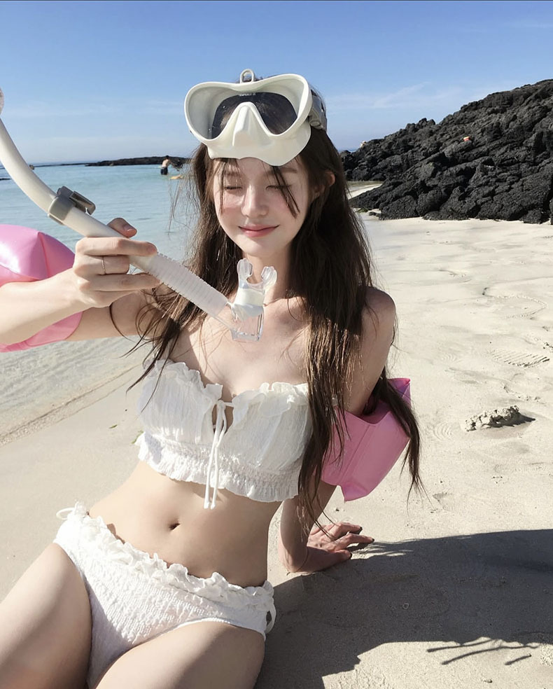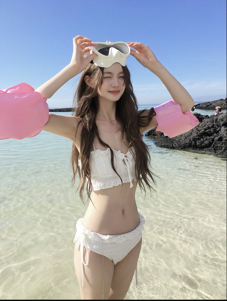 Sexy coreano puro deseo de viento blanco cintura alta bikini borde split pechos pequeños vacaciones hot spring trajes de baño mujer