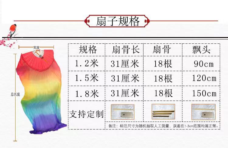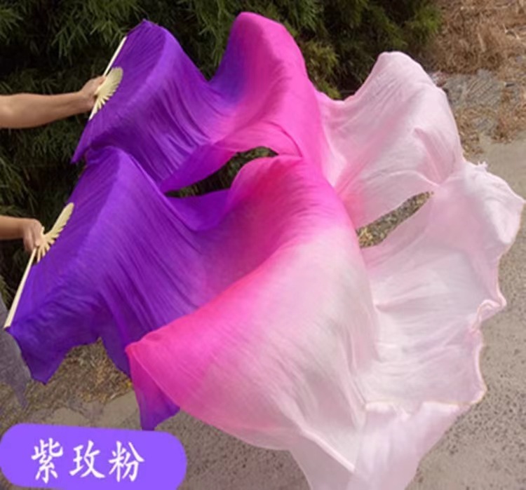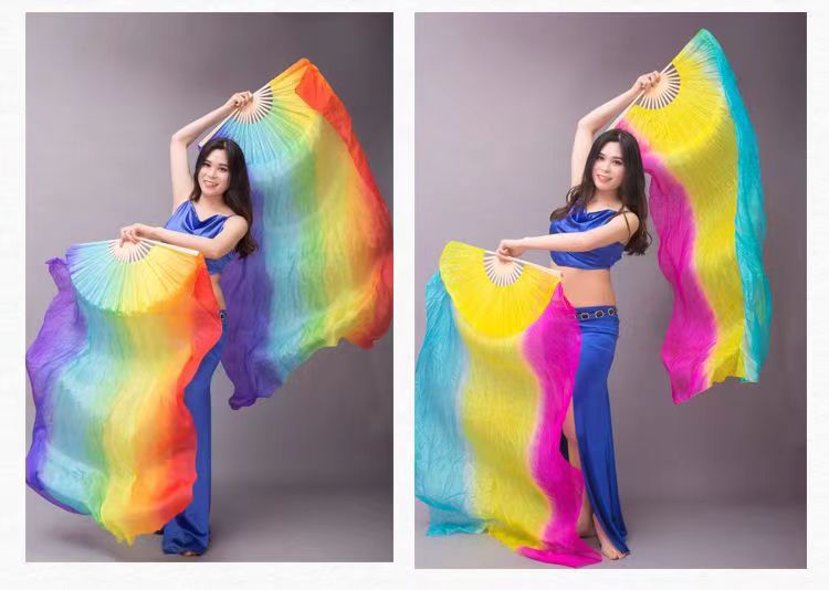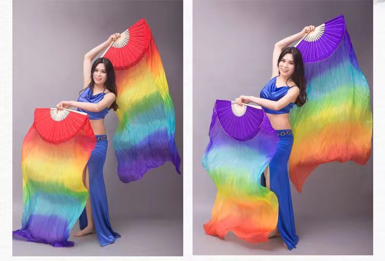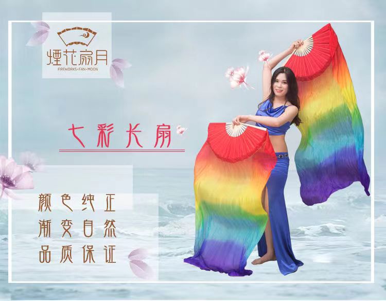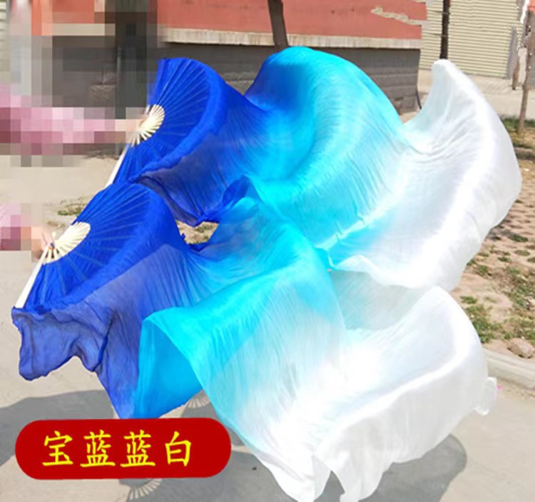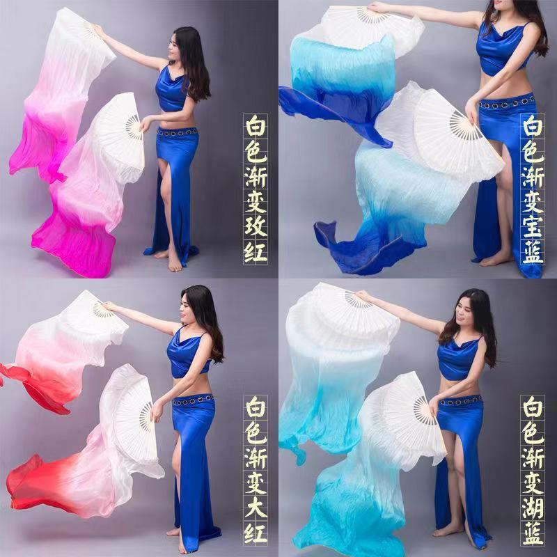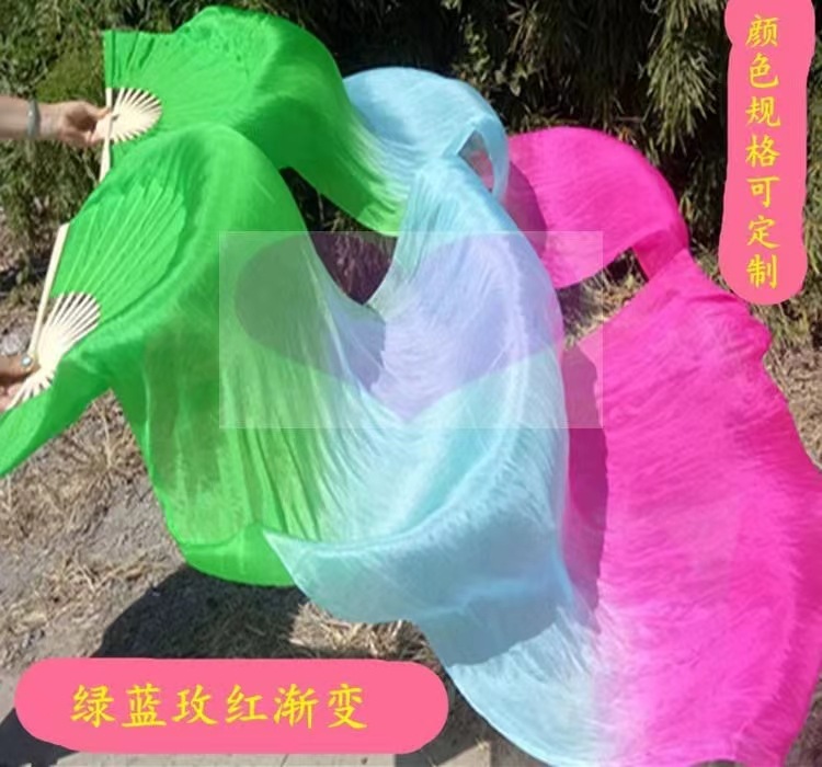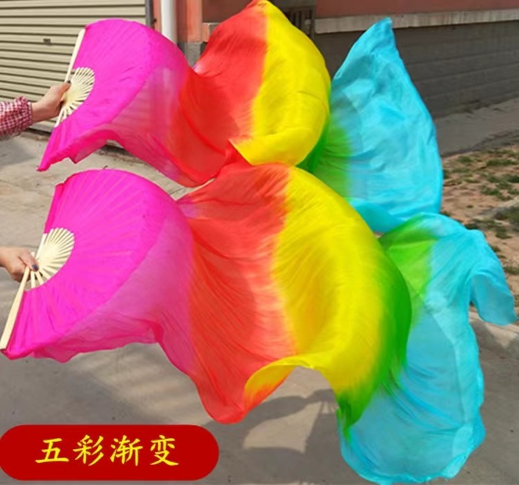 Ventilador de baile Wanjiang largo ventilador de baile Koi copiado alargado gradiente cuadrado ventilador de llama ventilador de seda largo