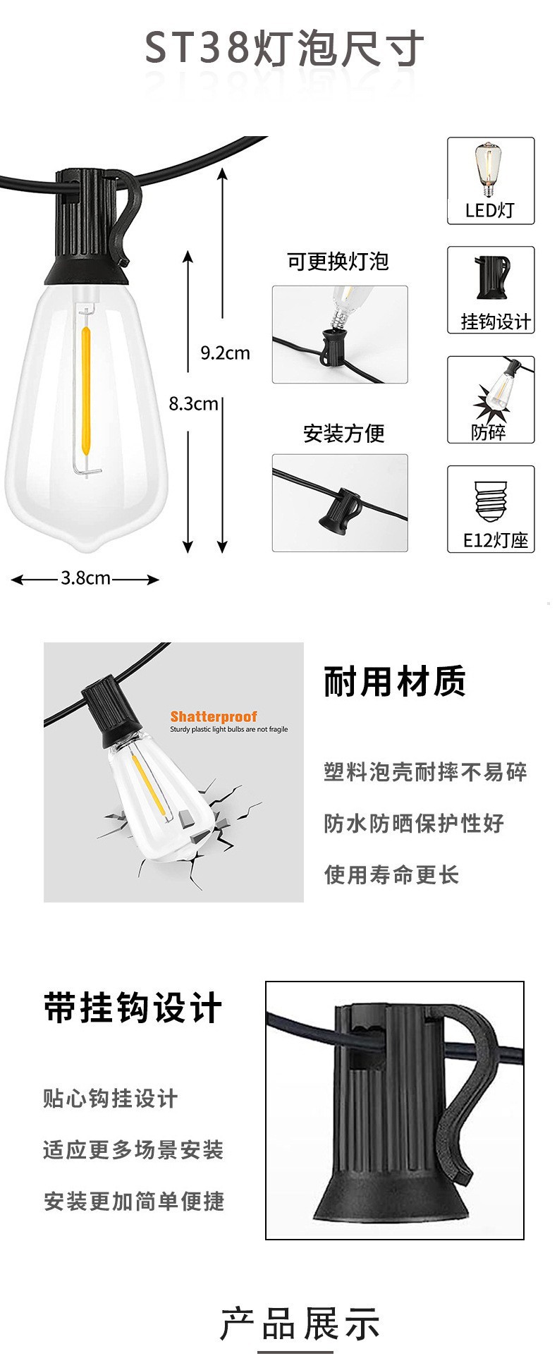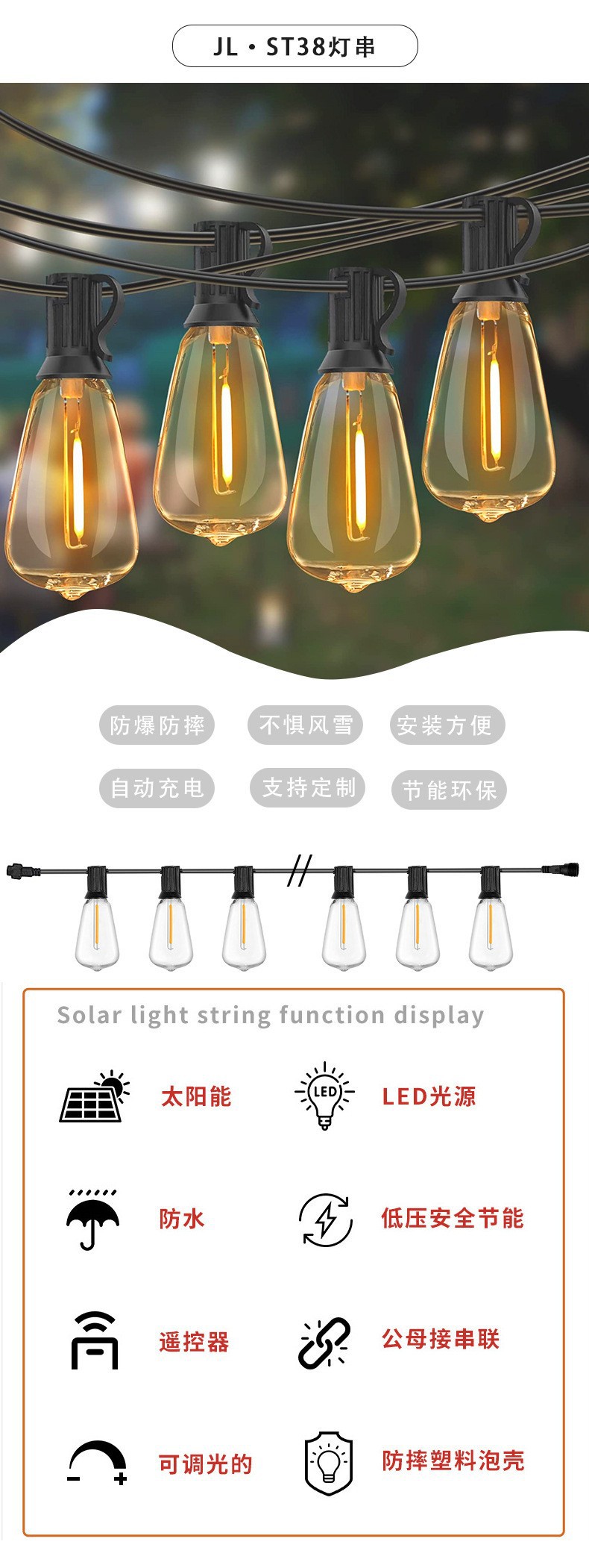 Estándares transfronterizos europeos y americanos st38 lámparas de burbujas solares lámparas de bola de color para la decoración de Navidad y Halloween al aire libre lámparas de patio